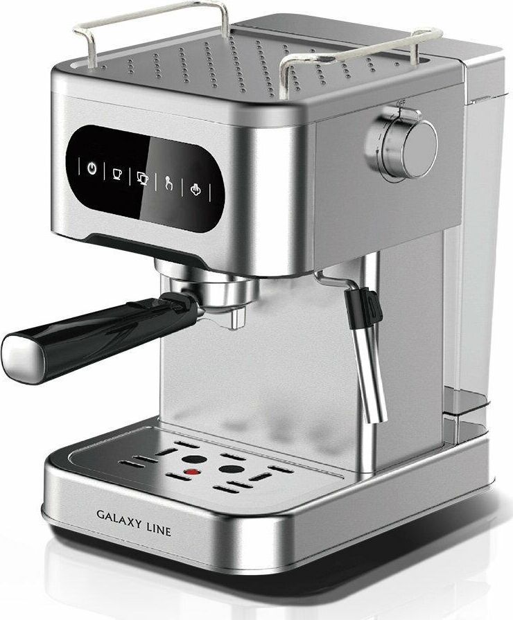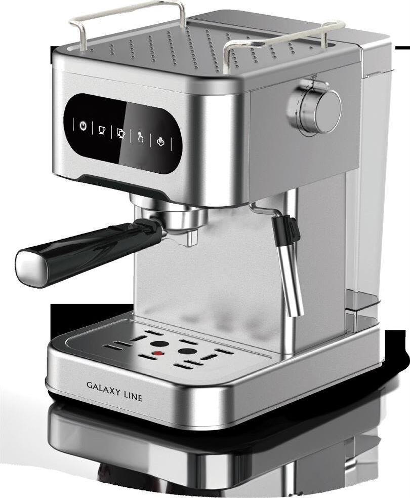 GALAXY LINE GL 0761 Кофеварка электрическая, 1500 Вт, 20 бар,специальный термоблок (улучшает вкус напитка и ускоряет процесс приготовления), подставка для подогрева чашек, капучинатор для приготовления молочной пенки, съемный резервуар для воды объемом 1,5 л, съемный поддон для капель, 2 фильтра из стали AISI 304 для 1-2 чашек, съемный контейнер для кофе из нержавеющей стали, автоотключение при отсутствии воды, сенсорное управление, регулятор интенсивности подачи пара, режим ожидания, очистка от накипи, мерная ложка, функция запоминания, 220-240В, 50 Гц