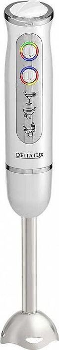 Параметры Номинальная потребляемая мощность 800 Вт Описание Блендер предназначен для смешивания, измельчения и взбивания продуктов и жидкостей в бытовых условиях Цвет: белый Индикатор сети с LED-подсветкой кнопок Насадка и нож из нержавеющей стали с 4 лезвиями Плавная регулировка скорости Режим «ТУРБО» Упаковка: цветная коробка