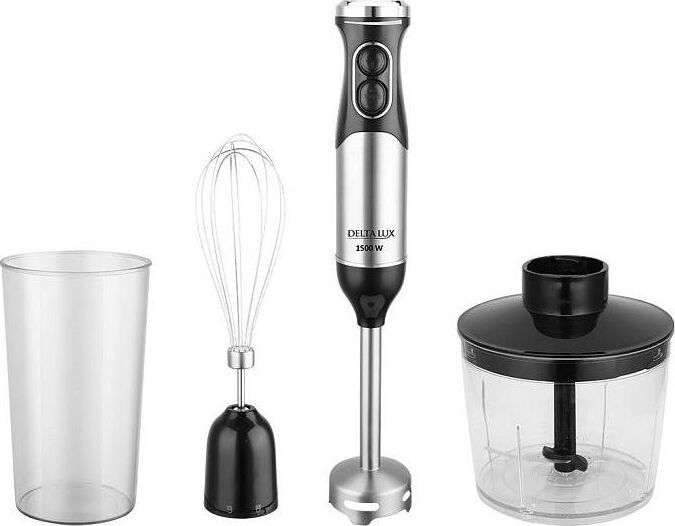 Параметры Максимальная мощность 1500 Вт Номинальная потребляемая мощность 600 Вт Объем чаши измельчителя 500 мл Объем мерного стакана 700 мл Описание Блендер электрический предназначен для смешивания, измельчения и взбивания продуктов и жидкостей в бытовых и аналогичных условиях Цвет: нержавеющая сталь с черным Ножи из нержавеющей стали Специальная заточка ножей Мерный стакан Три сменные насадки: насадка для смешивания венчик для взбивания измельчитель Противоскользящие ножки чаши измельчителя Плавная регулировка скорости Режим «ТУРБО» Упаковка: цветная коробка