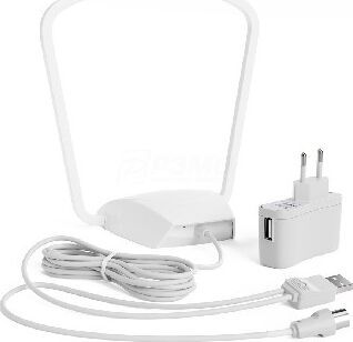 Антенна комнатная, цифровая активная, для приема телевизионных трансляций в диапазоне ДМВ в цифровых DVB-T/DVB-T2 и аналоговом стандартах, коэффициент усиления, макс., дБи, 21-69 канал: 33, имеет малошумящий усилитель с авто регулировкой усиления и фильтр от помех базовых станций сотовой связи.