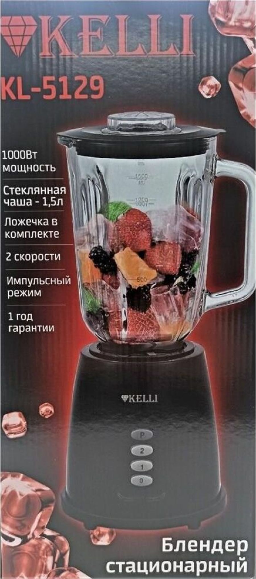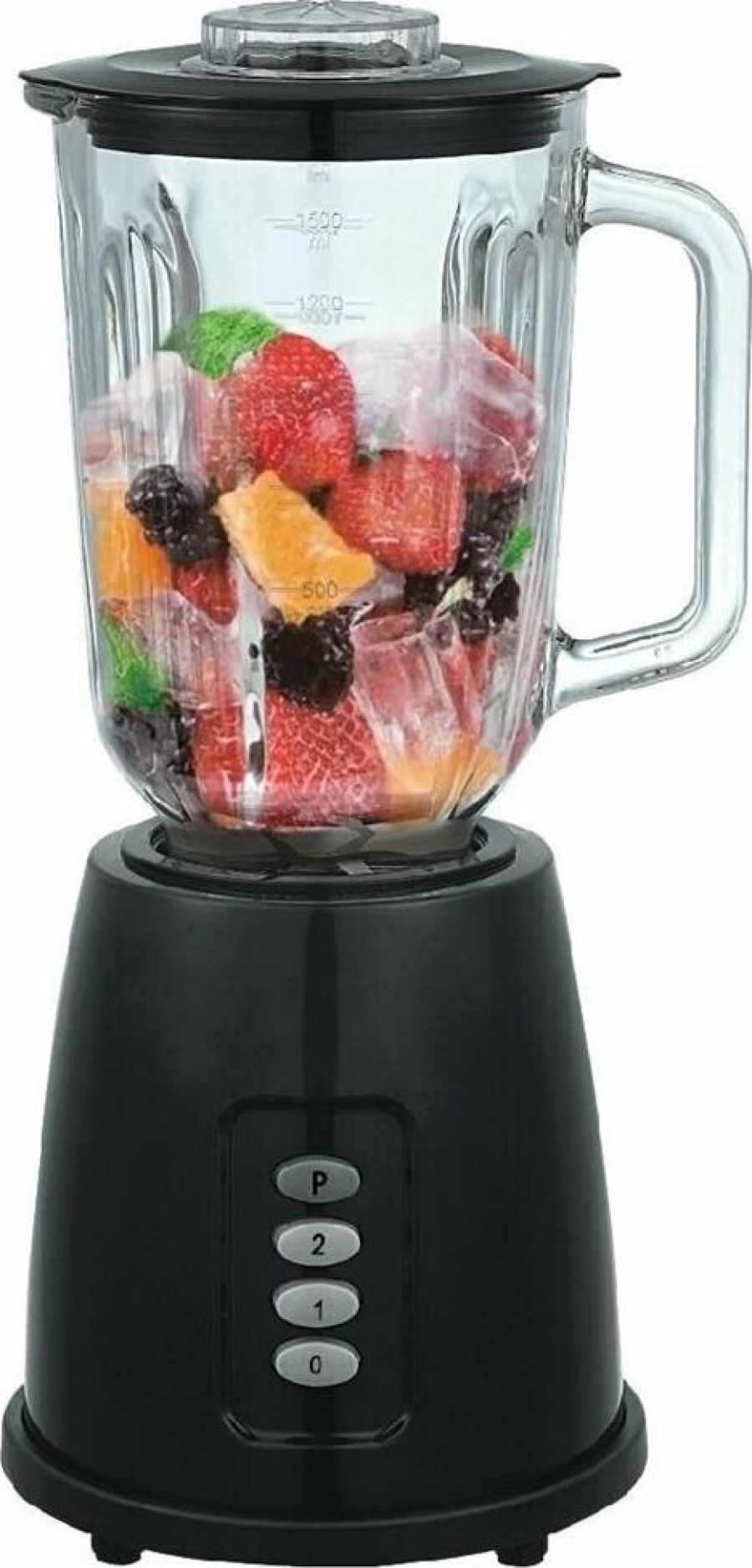 Блендер стационарный Мощность: 1000 Вт Объем СТЕКЛЯННОЙ чаши: 1,5 л Число скоростей: 2 Ложечка в комплекте Ножи из нержавеющей стали Палочка для перемешивания Импульсный режим Отверствие для добавления ингредиентов Противоскользящие ножки 220-240 В, 50\ Гц