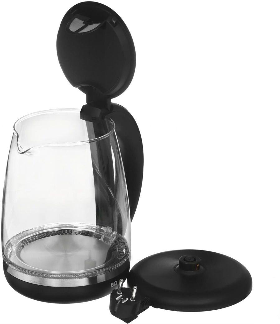 Мощность: 2200 Вт / Объём: 2 л / Корпус из жаропрочного стекла / LED подсветка / Шкала уровня воды / Автоотключение / Вращающийся корпус на 360' / Отсек для хранения электрошнура / Длина шнура: 0.75 м