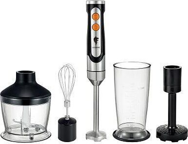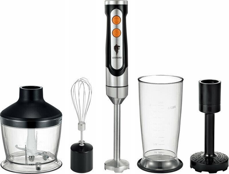 2 скорости работы: Обычный и Turbo режим, регулировка скорости. Насадка блендер из нержавеющей стали Ножи из нержавеющей стали Измельчитель 500 мл Венчик Стакан для смешивания 800 мл Насадка для картофельного пюре Мощность 800 Вт Напряжение: 220-240 В, 50-60 Гц Гарантия 2 года