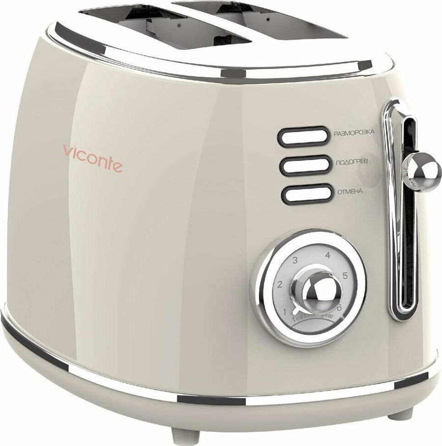Тостер Viconte VC-414 950 W, Тостер, мощность 950 W, термоизолированный корпус; на 2 тоста, 6 степеней прожаривания, функция подогрева, функция разморозки, кнопка отмены, съёмный поддон для крошек, простота использования, подарочная упаковка.