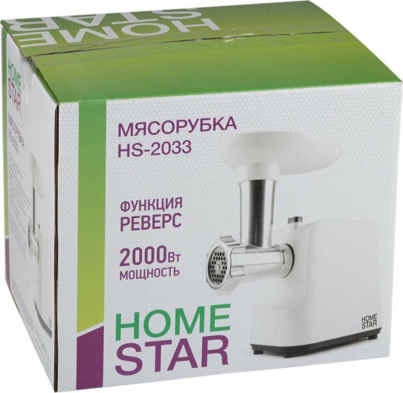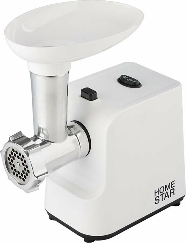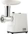 Нож из нержавеющей стали Функция реверс 2 металлических перфорированных диска Диаметр отверстий диска 5мм/ 7 мм Производительность 1,5 кг/мин Пластиковый поддон для загрузки Толкатель Нескользящие ножки Защита двигателя от перегрузки 300W номинальная потребляемая мощность 2000W max мощность при нагрузке