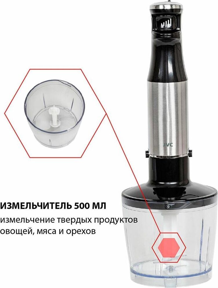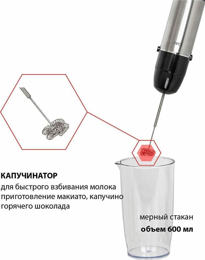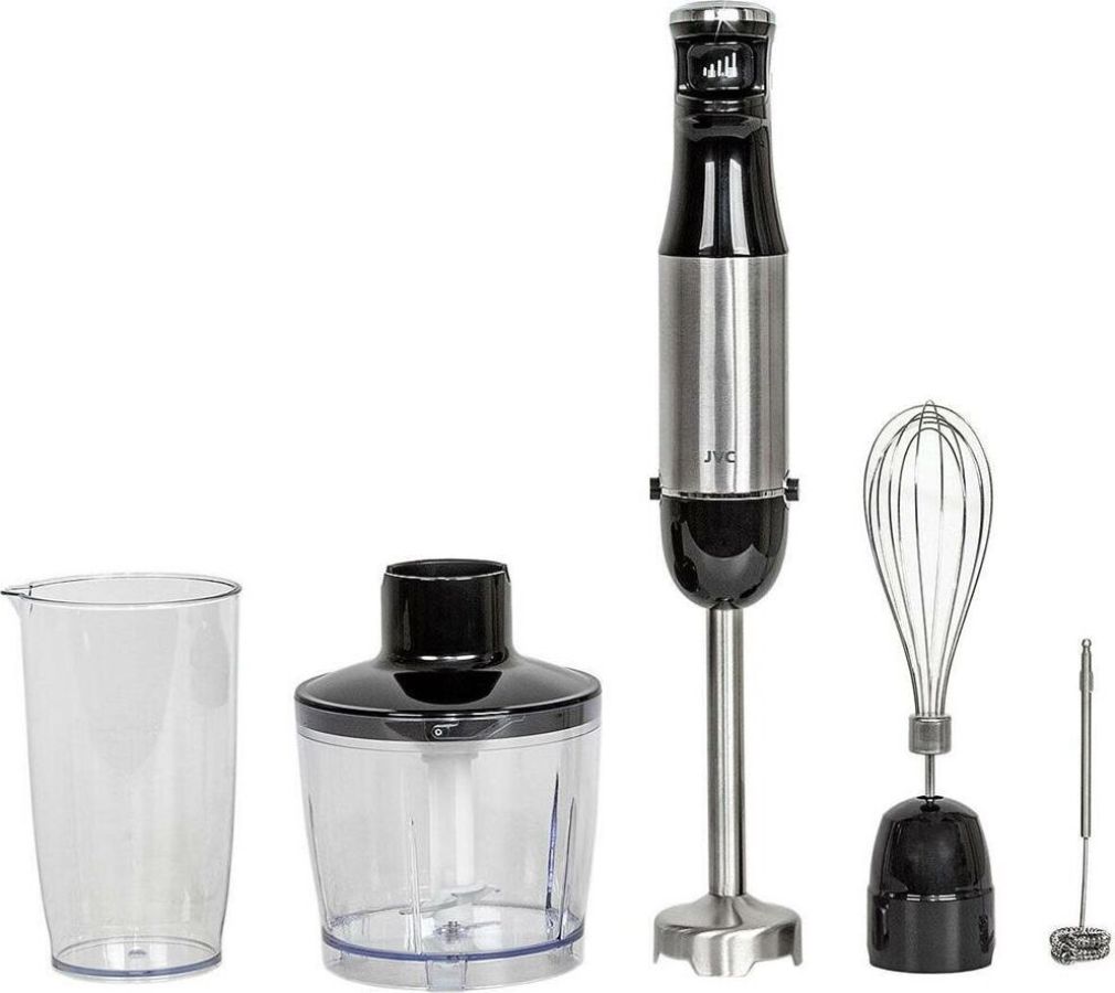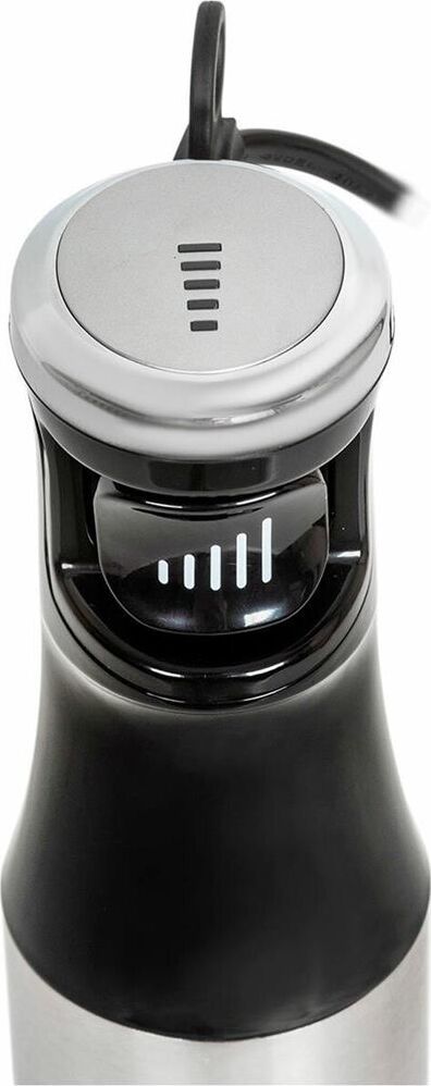 Блендер погружной, набор, максимальная мощность 1200 ватт, бесступенчатая регулировка скорости в одно касание, светодиодная подсветка, измельчитель 500 мл, мерный стакан 600 мл, венчик для взбивания, венчик для вспенивания молока, петля для подвешивания, длина кабеля 1,15 м.