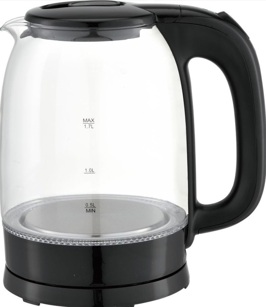 1,7 л. Термостойкое стекло. Мощность 2200 Вт. Закрытый нагревательный элемент, Защита от включения без воды, Защита от перегрева, Фильтр от накипи Габариты изделия/упаковки 221.8* 156.3 * 230/21*18*23.8. Вес нетто/брутто 1,27/1,38
