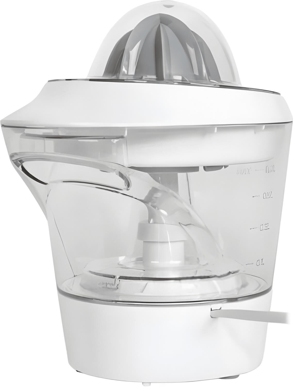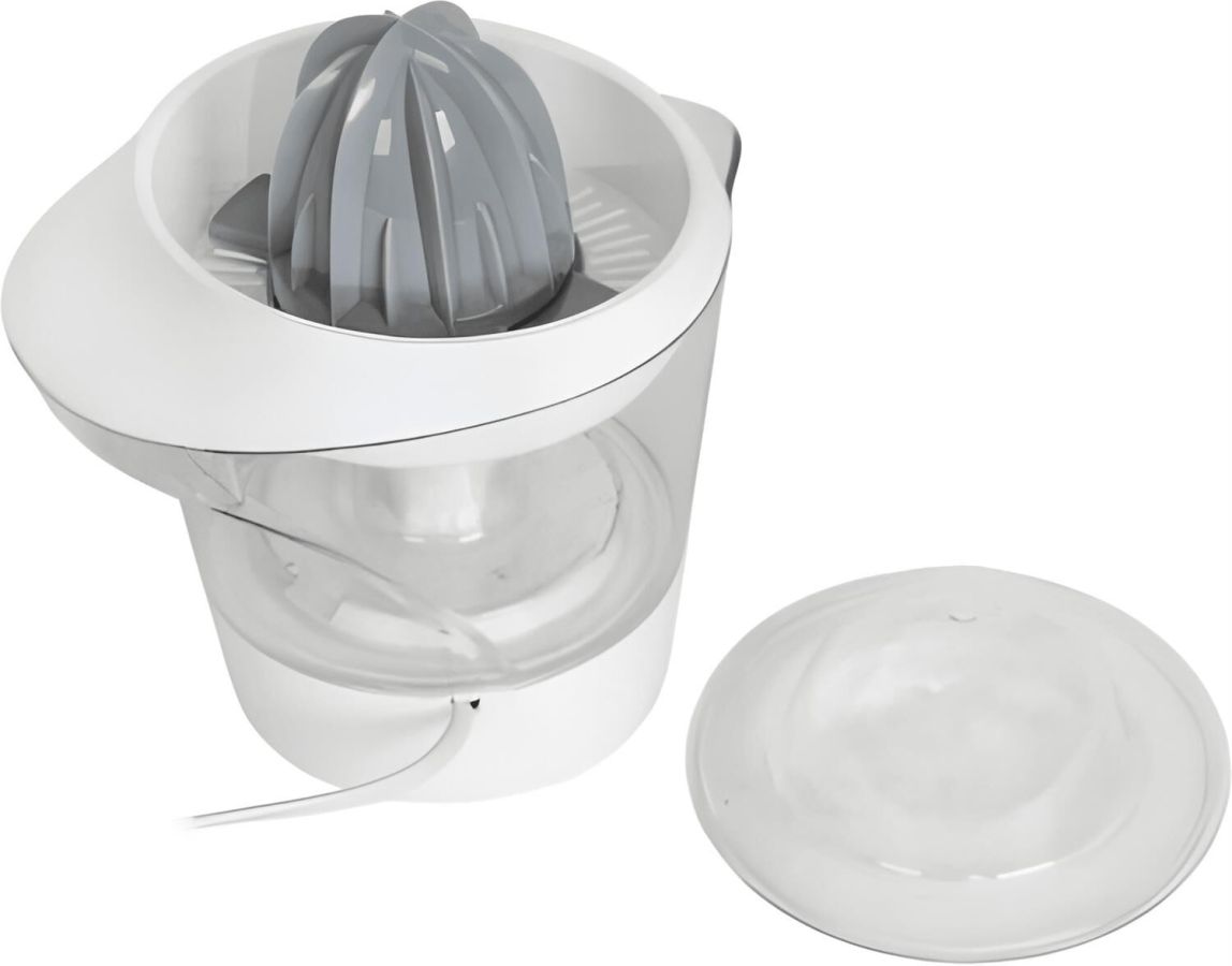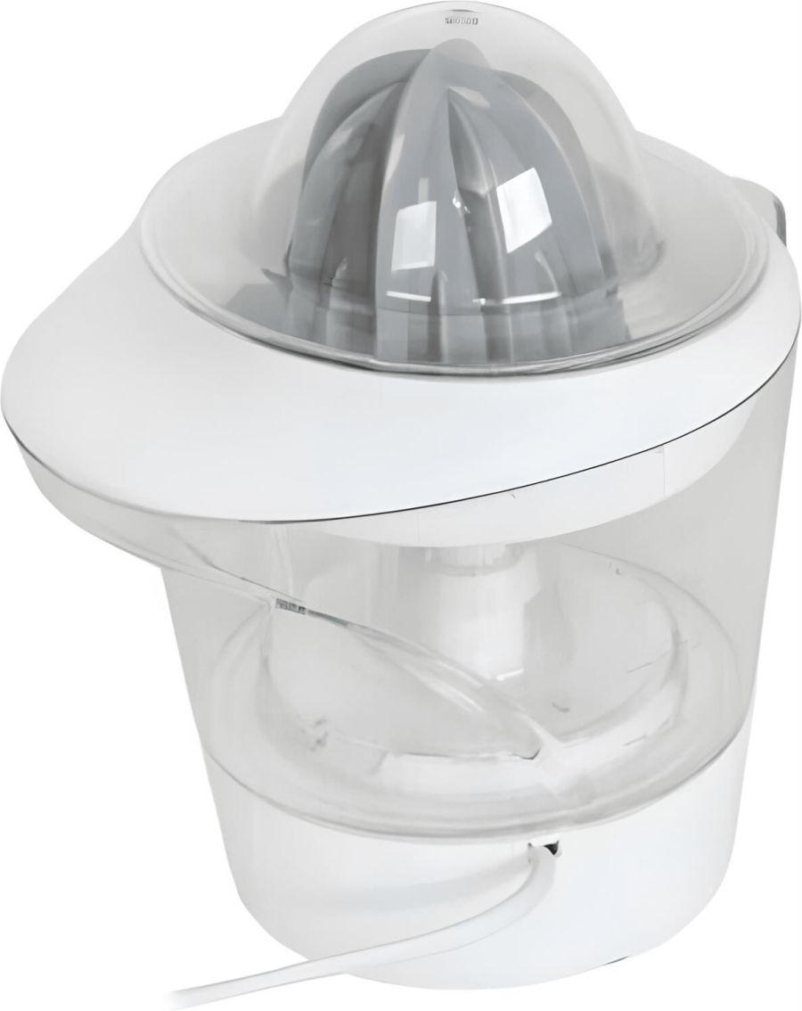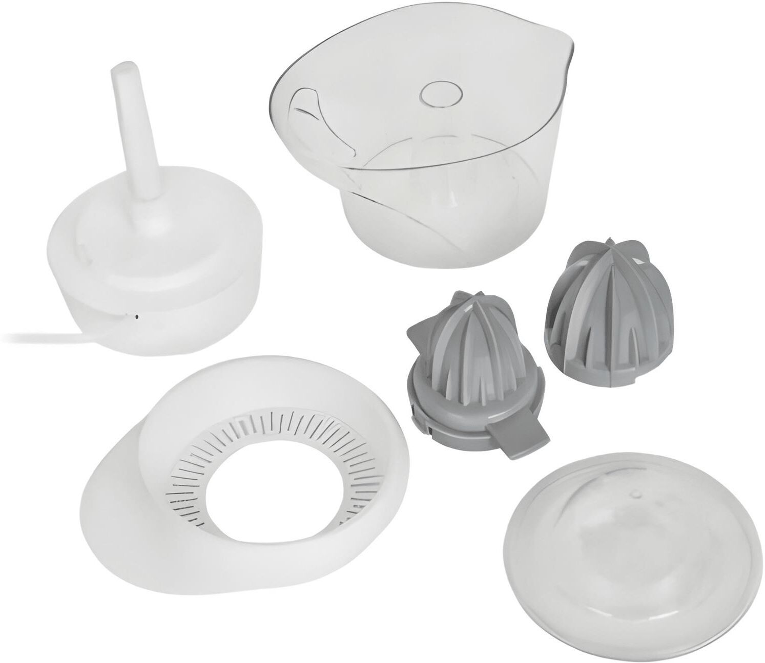 Соковыжималка для цитрусовых, Объем 0,7 л., Мощность 40 Вт., 2 сменные насадки-конуса для фруктов разного размера, Двустороннее вращение насадки, Прозрачная крышка для защиты от пыли, Прорезиненные ножки, Легко разбирать и мыть