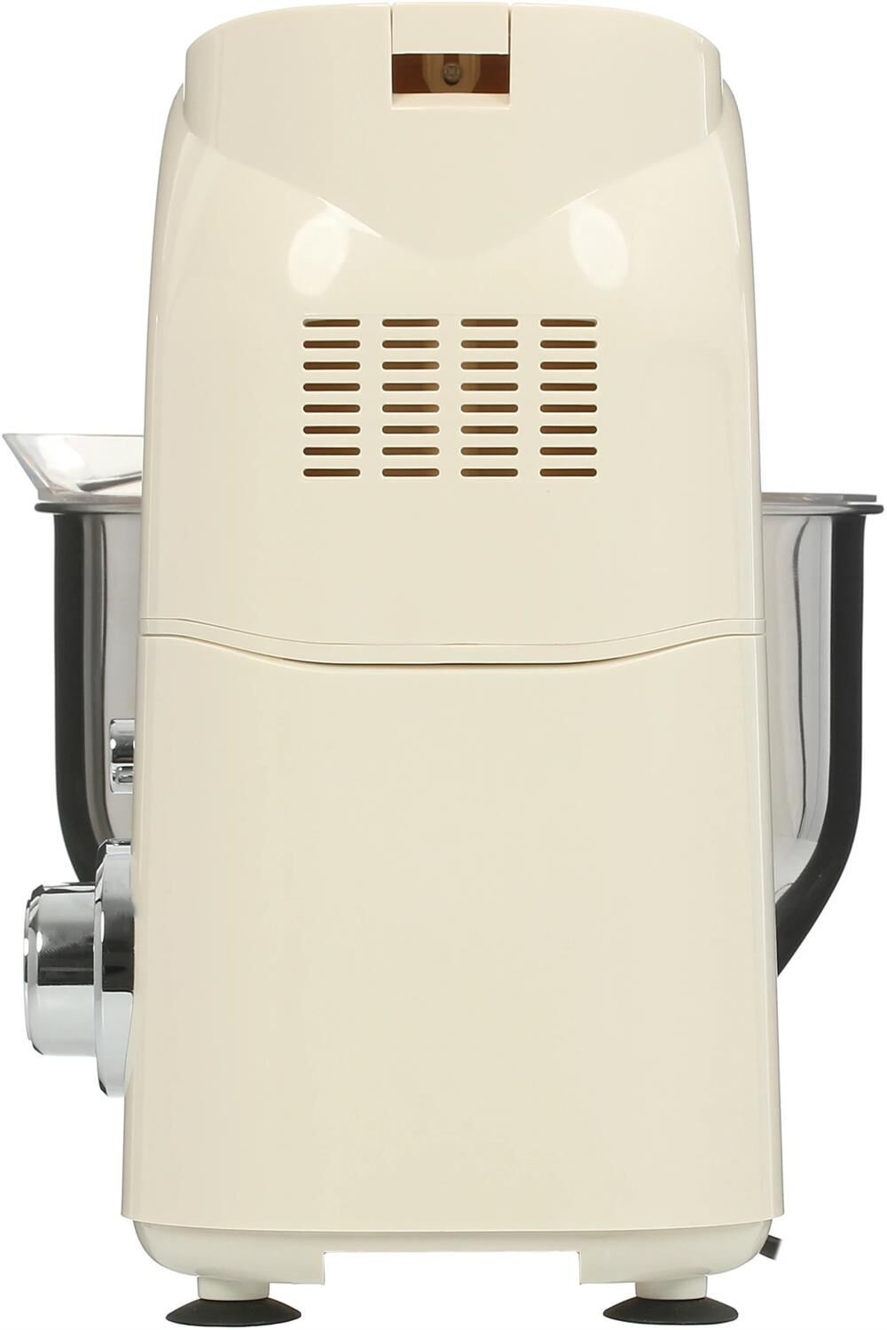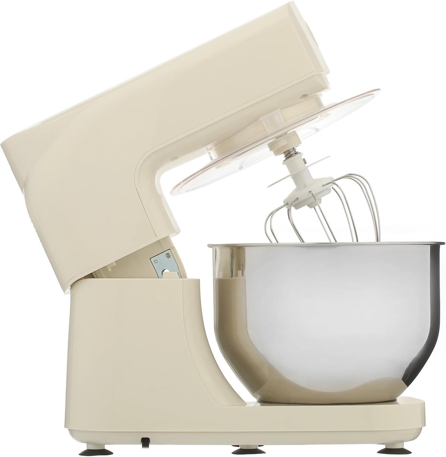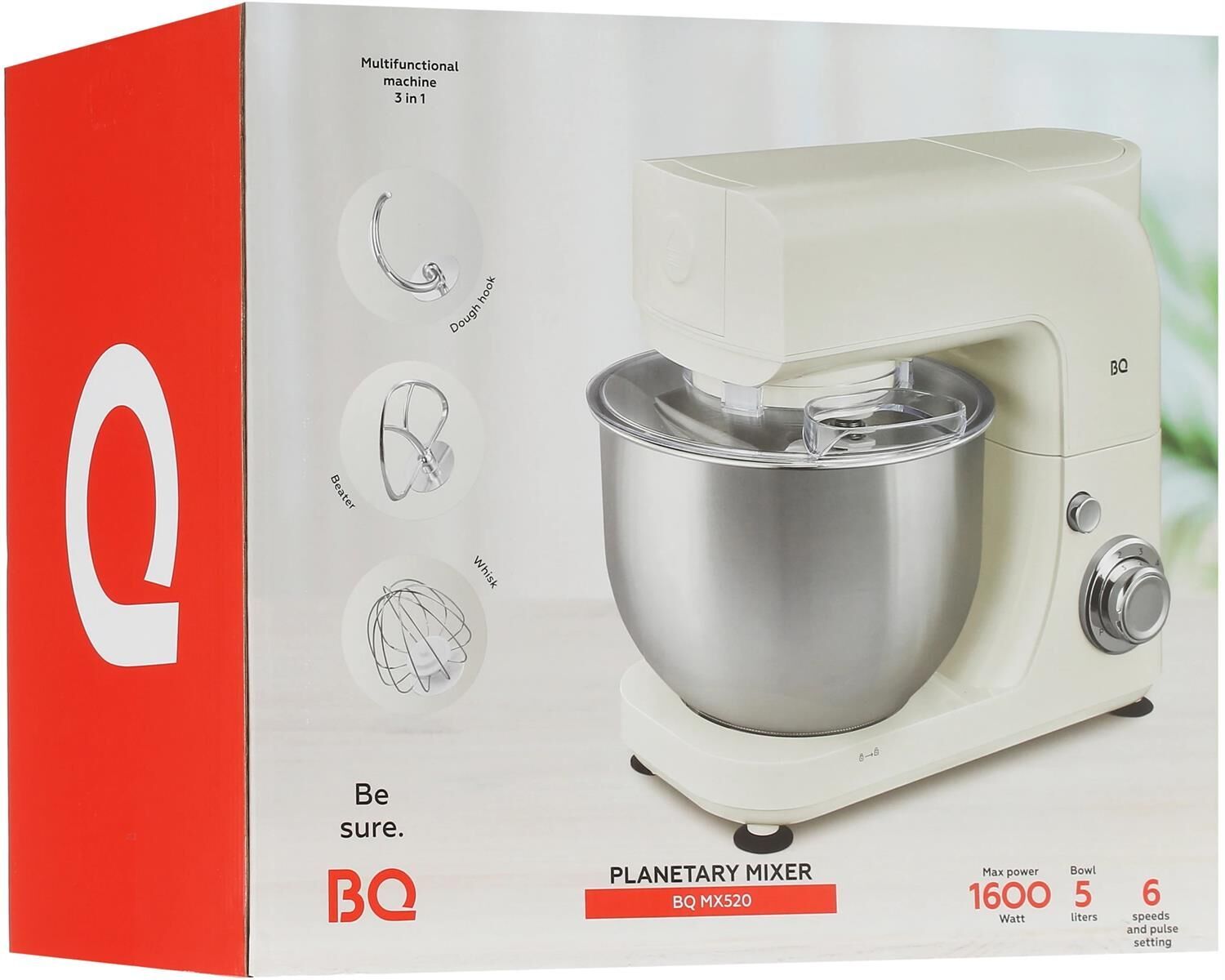 Планетарный миксер / Макс. мощность 1600 Вт / 6 скоростей + импульсный режим / Объем чаши 5 литров / Планетарное движение насадок / Скорость работы в основном режиме: 1 — 49 об/мин, 2 — 59 об/мин, 3 — 86 об/мин, 4 — 110 об/мин, 5 — 148 об/мин, 6 — 170 об/мин / Скорость работы в импульсном режиме 180 об/мин / Материал корпуса: Пластик / Материал чаши: Нержавеющая сталь / Материал крышки: Пластик / Материал насадок: Крюк для замешивания теста — металл, Насадка для смешивания — металл , Венчик для взбивания — нержавеющая сталь + пластик / Длина сетевого шнура: 1 м / Ножки-присоски / В комплекте: Металлический венчик для взбивания, Крюк для замешивания теста, Насадка для смешивания