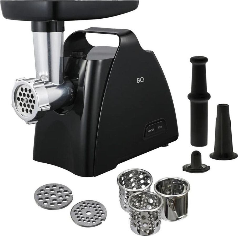 BQ MG1006 BLACK Мощность 2100 Вт Функция реверса 2 диска для разных видов фарша (5 мм и 7 мм) Насадка для колбасок и кеббе Овощерезка с 3 барабанами Нож из нержавеющей стали Мытье в посудомоечной машине