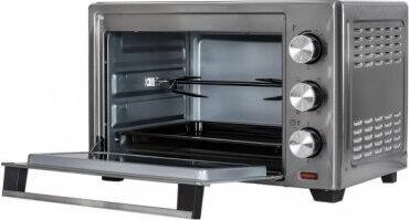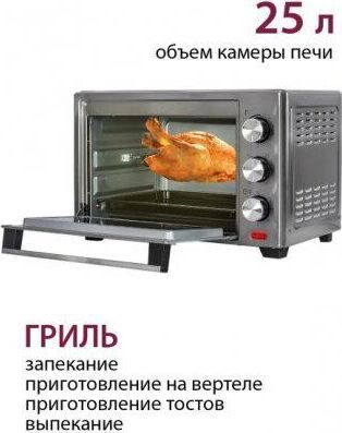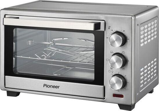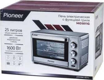 PIONEER MO5011G Тип управления: механическое Внутренний объем, л.: 25 Внутренняя подсветка: есть Количество режимов работы: 6 Температура, °С: 100-250 Гриль: есть Звуковой сигнал завершения работы: есть Индикаторы: включения Таймер: до 60 минут Комплектация: электропечь, металлическая решетка, плоский противень, вертел, держатель для вертела, ухват, гарантийный талон, инструкция на русском языке Материал корпуса: металл Цвет: серебристый Максимальная потребляемая мощность, Вт.: 1600 Особенности: хромированная ручка дверцы и регуляторы панели управления, двойное жаропрочное стекло