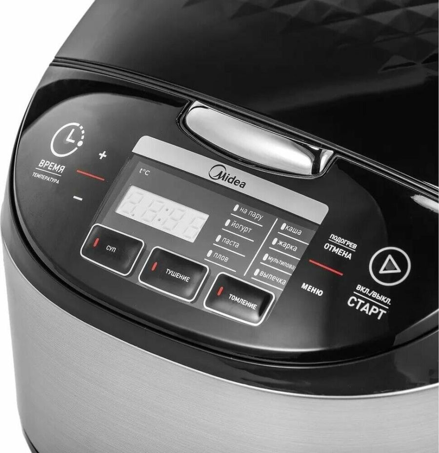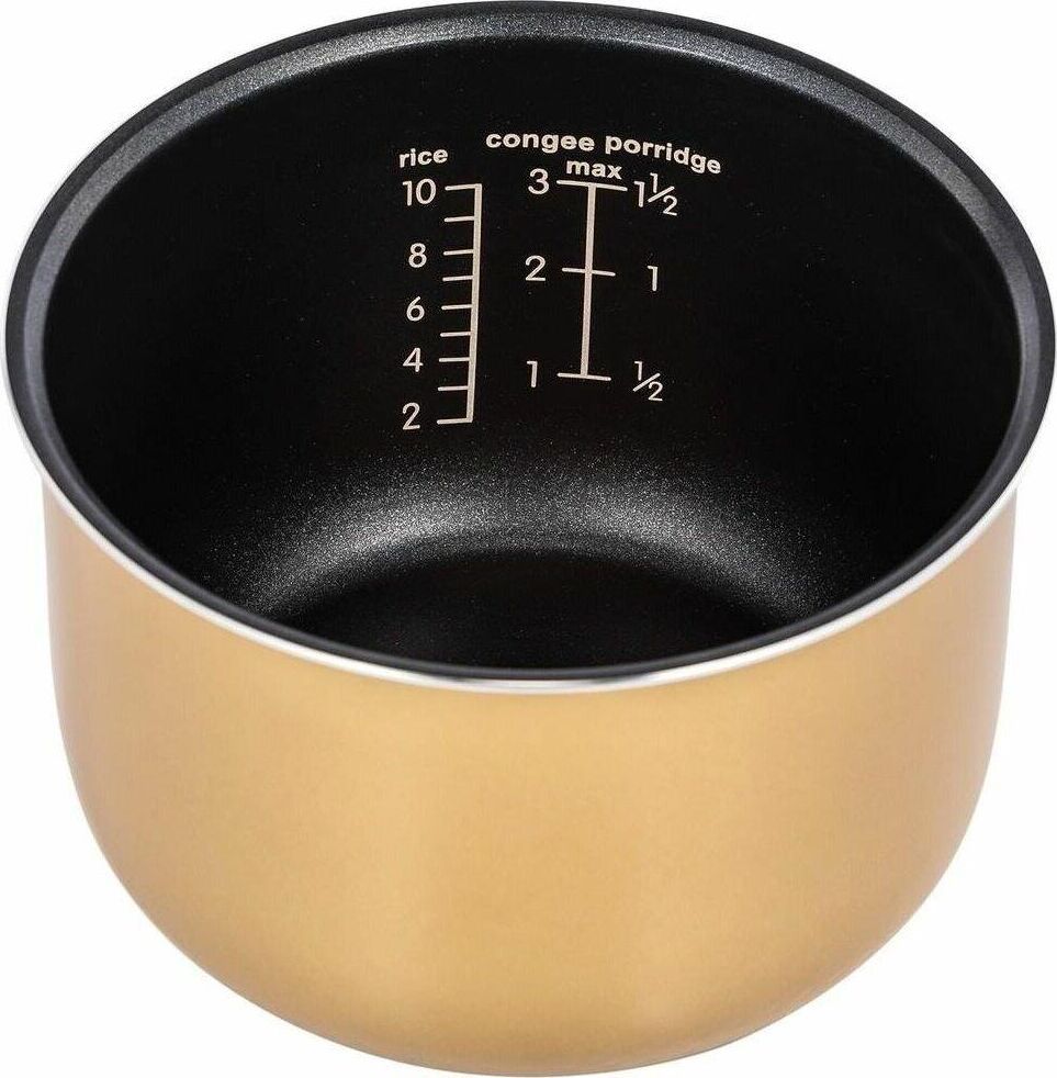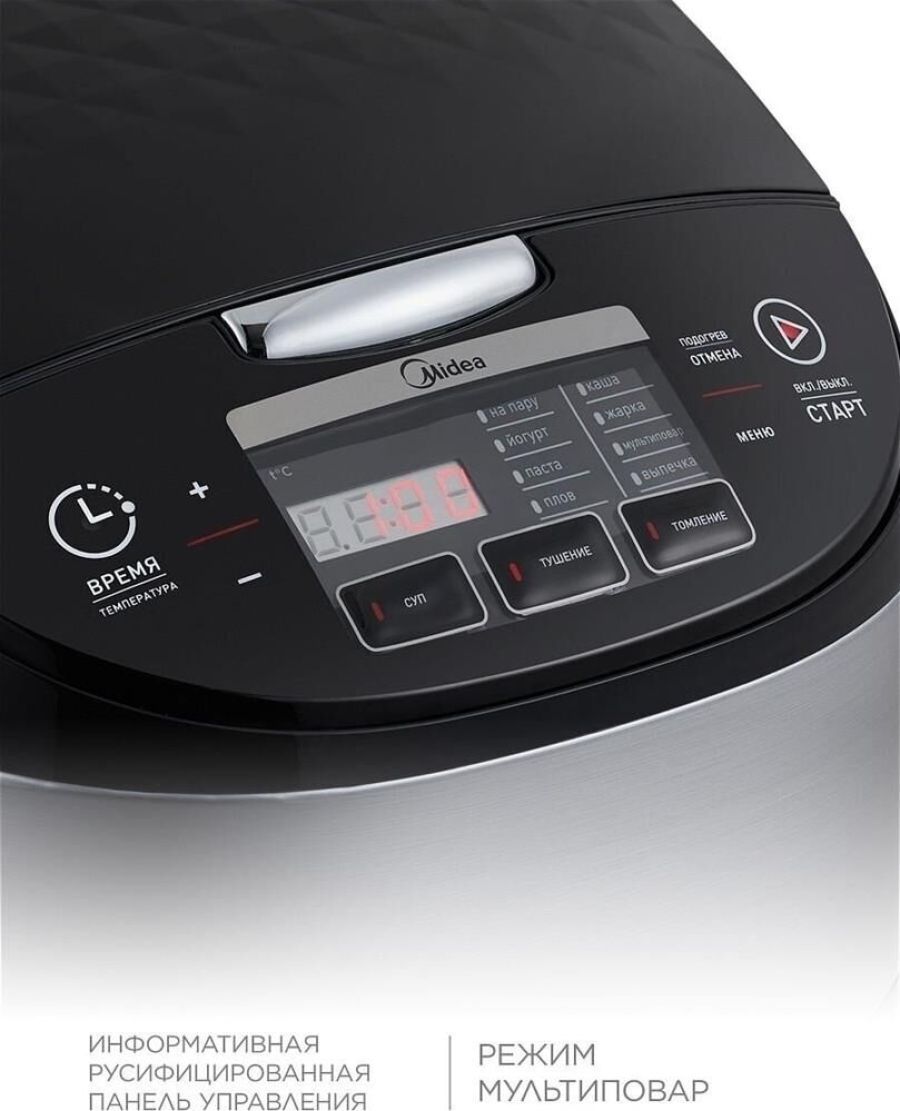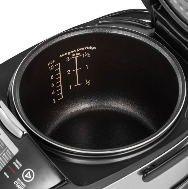 Тип мультиварка. Объем 5 л. Мощность 920 Вт. Управление кнопочные переключатели. Кол-во программ 11. Программы приготовления. Режимы свободный режим, жарка / фритюр, тушение, томление, выпечка, приготовление на пару. Программы каша / суп, плов, макароны / паста, йогурт, Функции термостат, автоприготовление, поддержание температуры, таймер автоотключения, таймер отсрочки старта / 24 часа /. Дисплей . Антипригарное покрытие тефлоновое. Защита от детей . Корзина пароварки. Габариты 26x29x39 см.