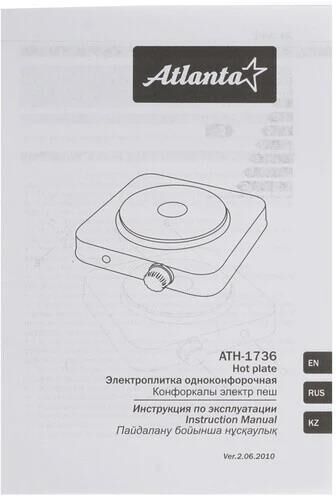 Номинальная мощность 1500 Вт Чугунный ТЭН диаметром 18.5 см Регулятор температуры Индикатор работы Защита от перегрева Кабель питания 60 см 230 B ~ 50 Гц