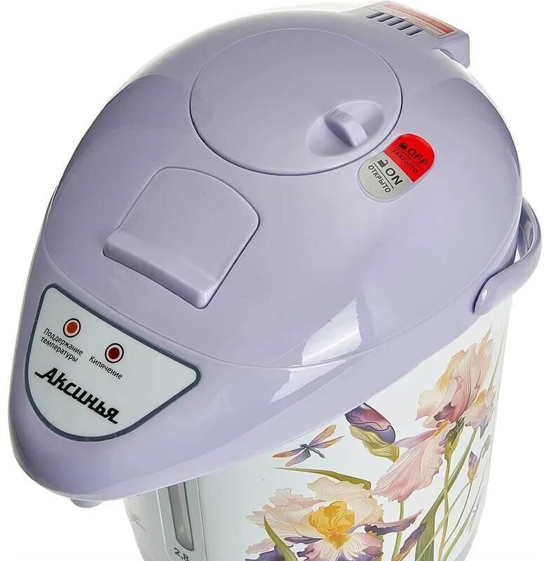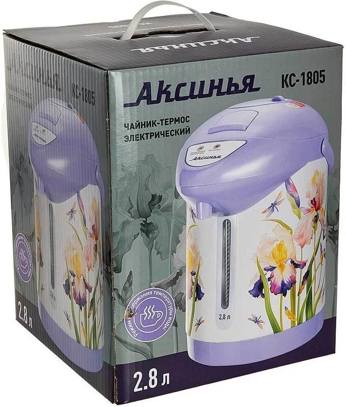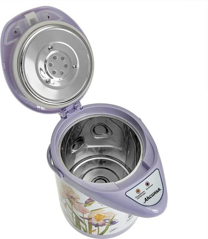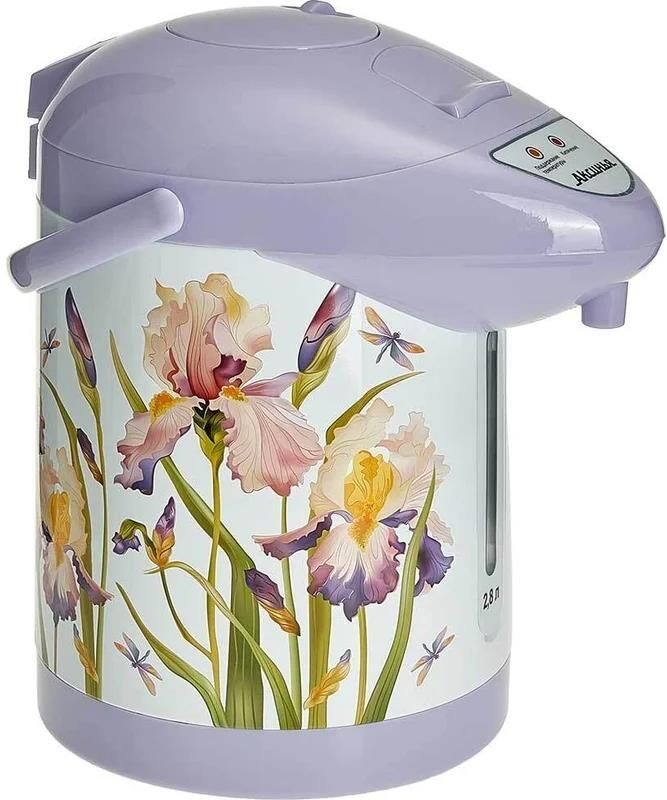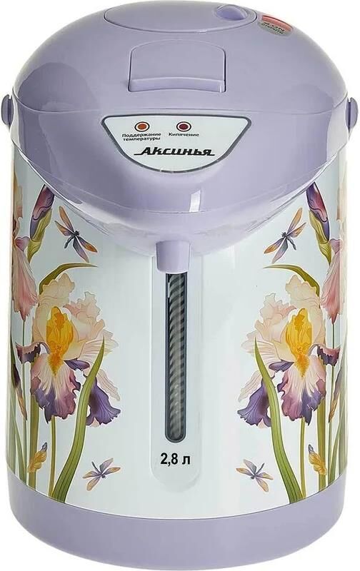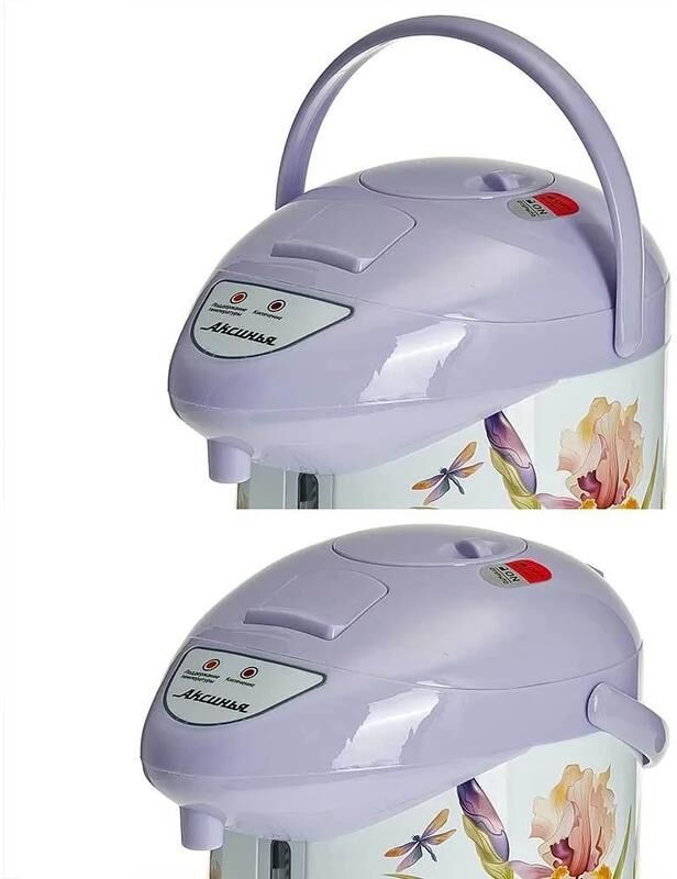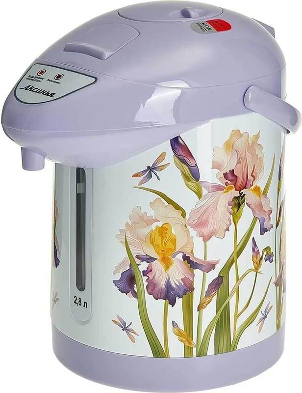 Параметры Объем 2,8 л Номинальная потребляемая мощность 750 Вт Мощность в режиме поддержания температуры 30 Вт Описание Чайник-термос электрический предназначен для нагрева воды и поддержания ее температуры в бытовых и аналогичных условиях Поворот корпуса на базе на на 360° Внутренняя ёмкость из нержавеющей стали Шкала уровня воды Световые индикаторы работы Съёмная крышка для удобства очистки Съёмный шнур электропитания Ручной способ разлива воды Режим поддержания температуры воды Блокировка ручной помпы от случайного нажатия Блокировка включения без воды Автоматическое отключение при недостаточном количестве воды Защита от перегрева (срабатывание при 105?C) Упаковка: цветная коробка