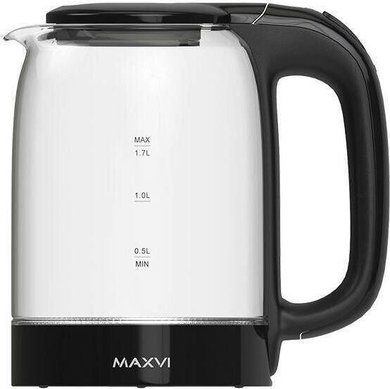Мощность 1850-2200 Вт, 1.7 литра, стеклянный корпус, LED-подсветка, подставка с вращением 360 градусов, шкала уровня воды, автоотключение, скрытый нагревательный элемент.