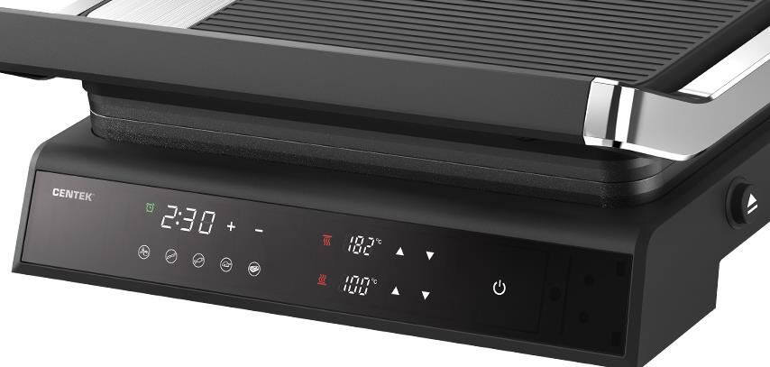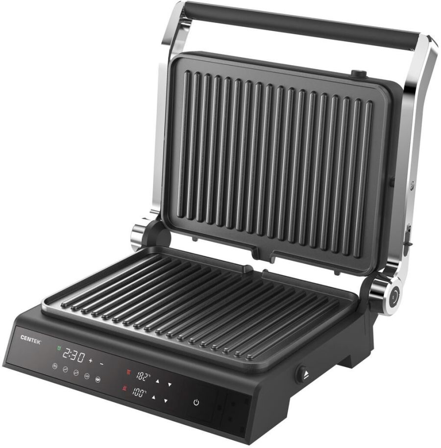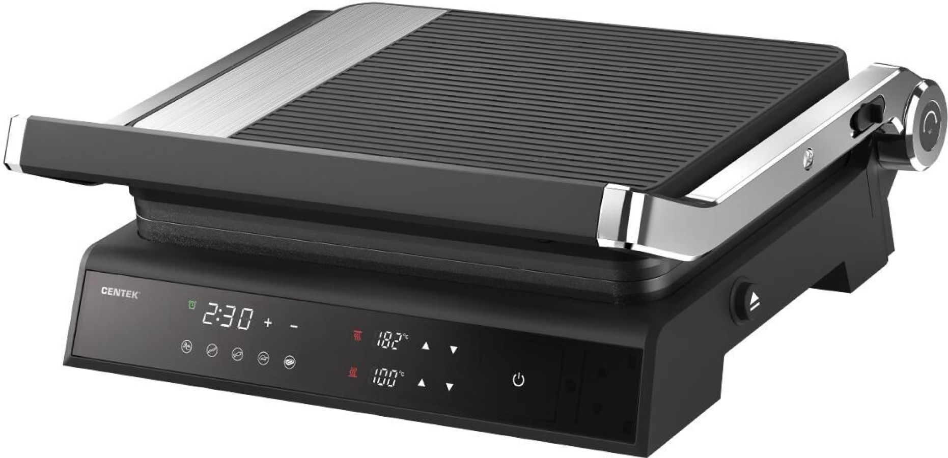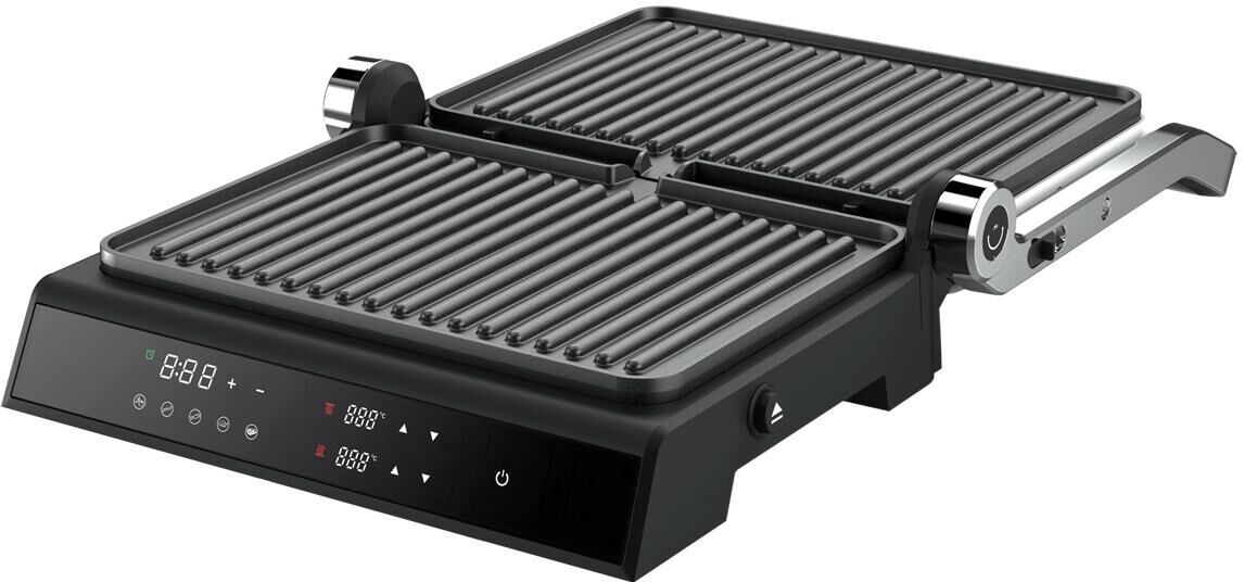 Мощность 2100 Вт Пластины 297 х 230 мм Быстрый нагрев до 230 °C Антипригарное покрытие Есть Комплект аксессуаров Поддон для сбора масла Управление Сенсорное Таймер 4 ч Материал корпуса Нержавеющая сталь, Пластик Особенности LED-дисплей, Ненагревающийся корпус, Открытие пластин на 180 градусов, Прорезиненные ножки