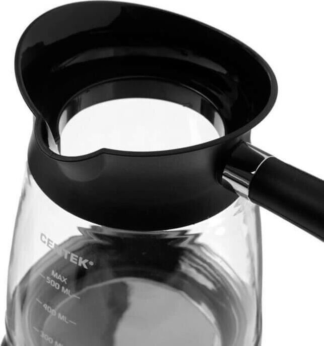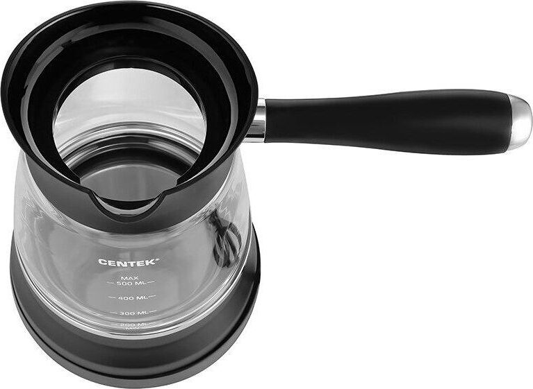 Электротурка CENTEK CT-1096 черный имеет мощность 480 Вт. Функция защиты от включения без воды поможет предотвратить выход из строя турки по невнимательности. Благодаря особой системе нагрева закипание жидкости происходит гораздо быстрее. Уровень воды не должен превышать отмету MAX на корпусе (500 мл).; Особенности:; - стеклянная колба;; - скрытый нагревательный элемент;; - съемная ненагревающаяся ручка;; - защита от включения без воды;; - защита от перегрева;; - удобное основание.