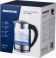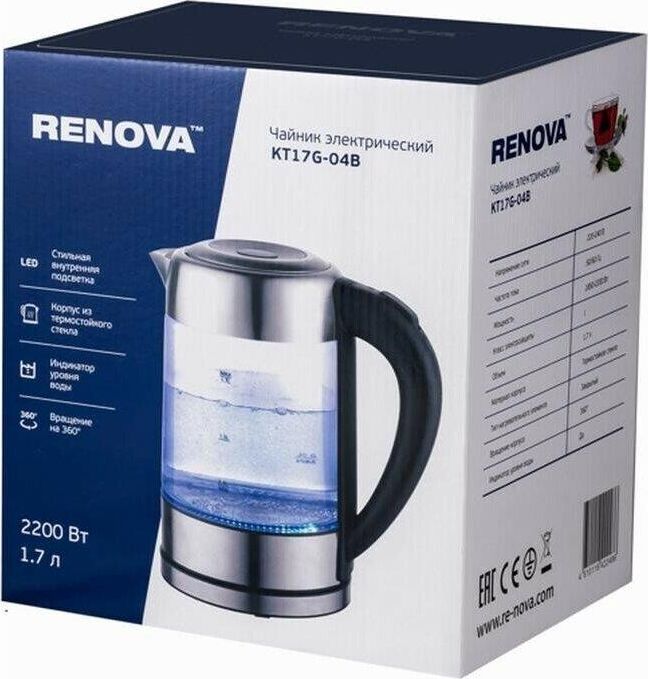 1,7 л. Термостойкое стекло. Мощность 2200 Вт. Закрытый нагревательный элемент, Защита от включения без воды, Защита от перегрева, Фильтр от накипи Габариты изделия/упаковки 221.8* 156.3 * 230/21*18*23.8. Вес нетто/брутто 1,27/1,38