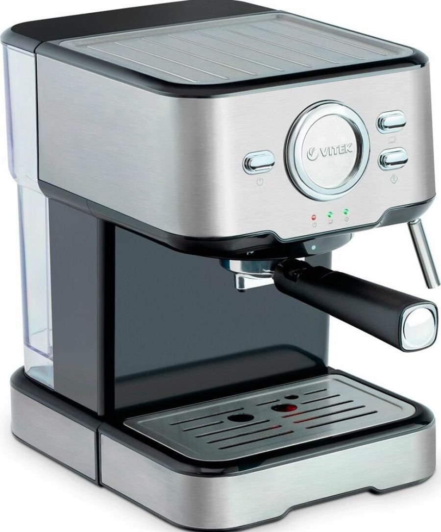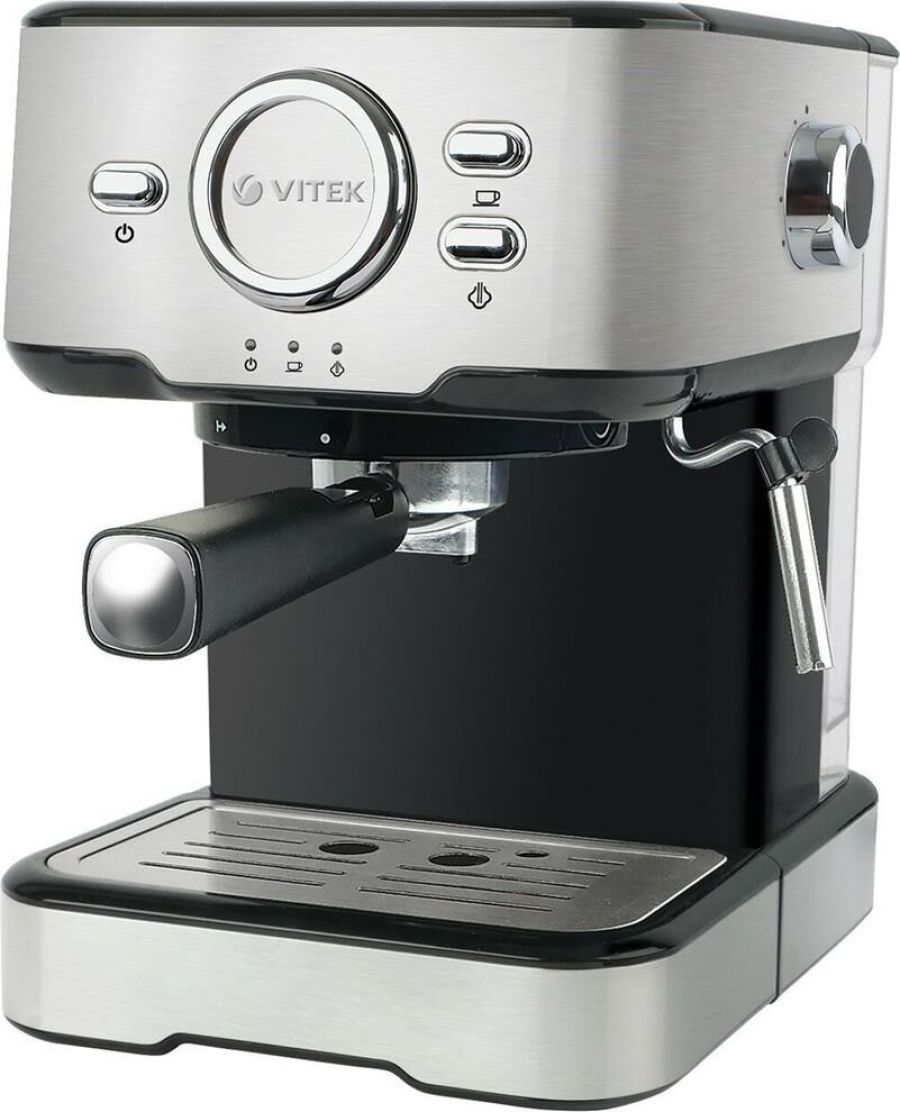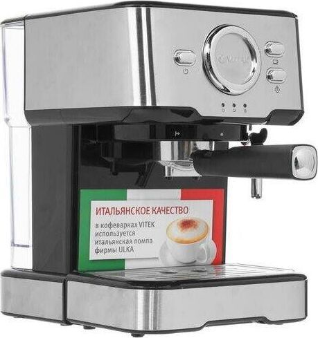 Кофеварка рожковая. Мощность: 850 вт, Давление помпы: 15 бар, Съемный резервуар для воды: 1,5 литра, Капучинатор, Индикатор уровня воды, Индикация включения, Подогрев чашек, Приготовление капучино, Приготовление эспрессо, Съемный лоток для сбора капель, Материал корпуса: нержавеющая сталь/пластик, Особенности: Итальянская помпа фирмы Ulka, Тип используемого кофе: молотый, Цвет: Черный/серебро.