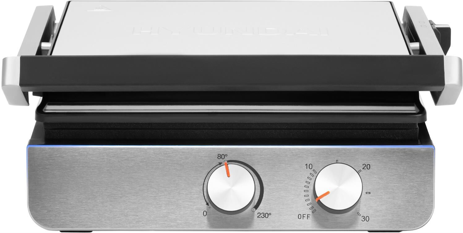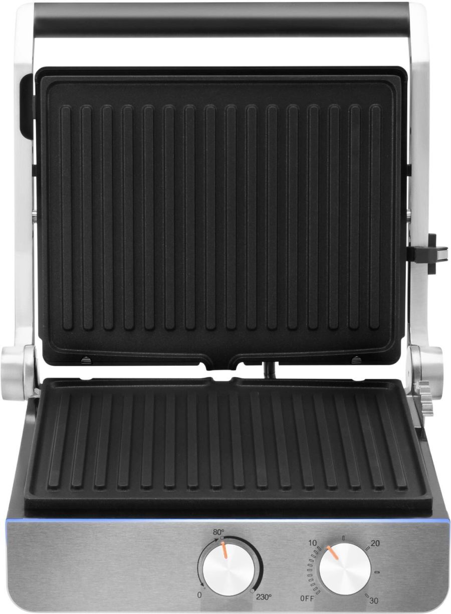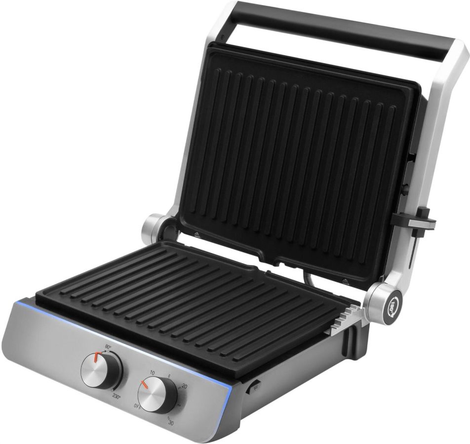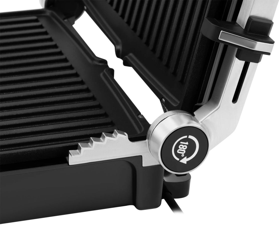 Тип управления механическое Мощность (макс) 2200 Вт Тип нагревательного элемента ТЭН Установка температуры приготовления Установка времени приготовления Антипригарное покрытие нагревательных частей Длина рабочей поверхности 23 см Ширина рабочей поверхности 29 см Съемные формы Цвет черный Материал корпуса нержавеющая сталь/пластик Длина электрокабеля 0.8 м Лоток для сбора жира Фиксация в закрытом состоянии Индикатор включения Индикатор нагрева Раскрытие на 180 градусов Верхняя крышка имеет «плавающий» фиксатор и адаптирует свое положение под любой продукт с максимальным касанием к панели нагрева Срок гарантии 24 мес.