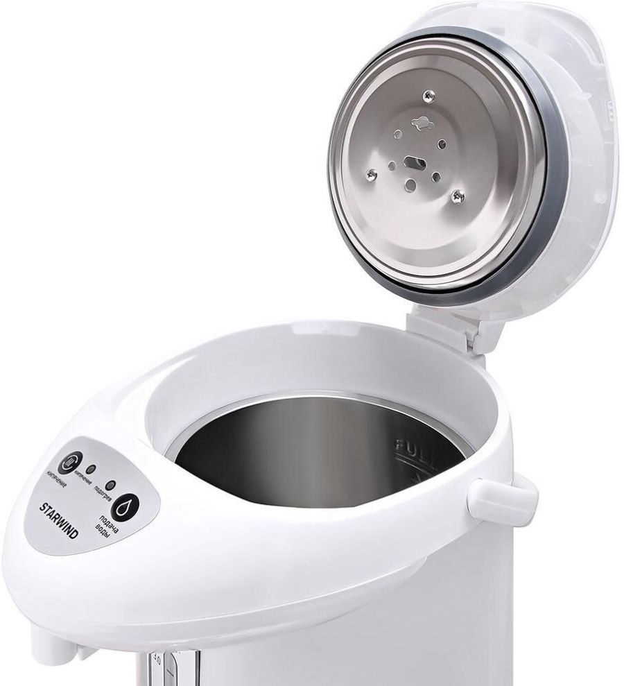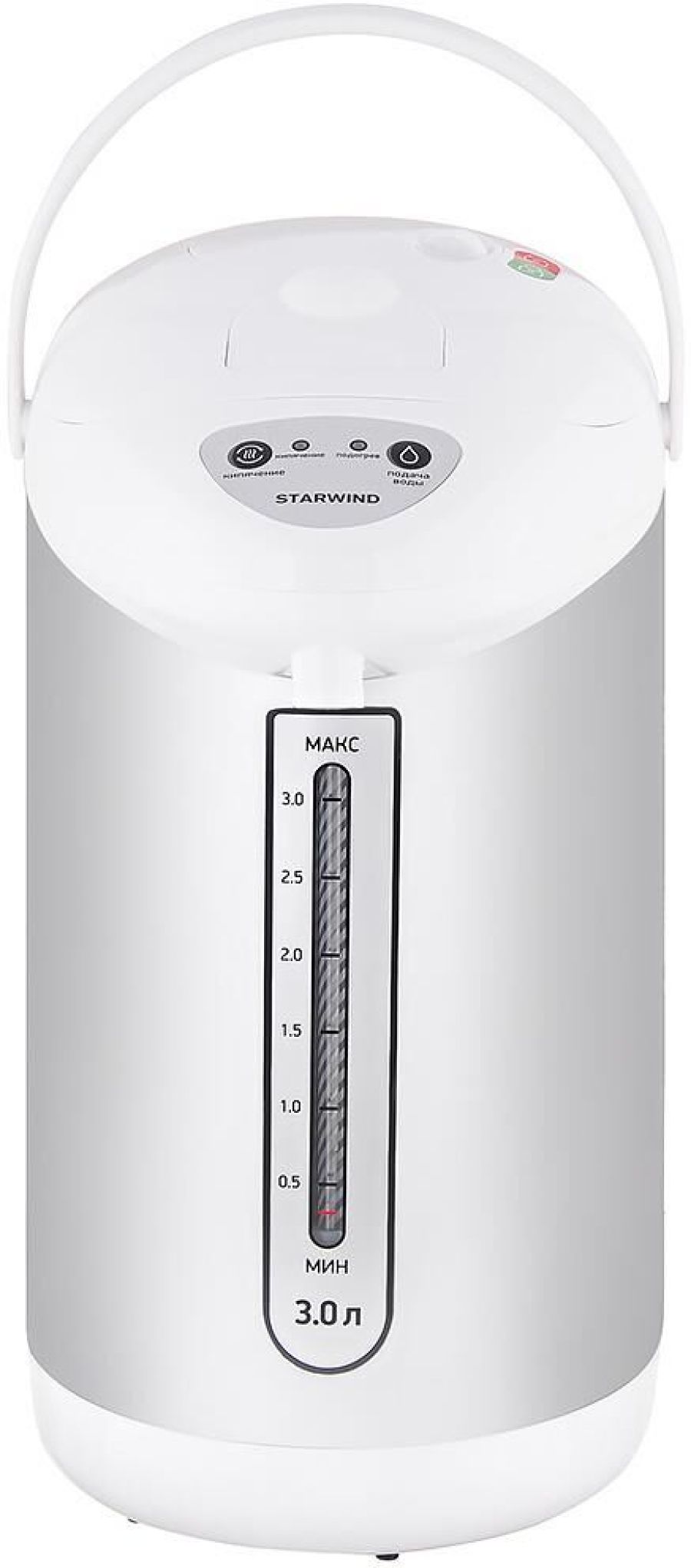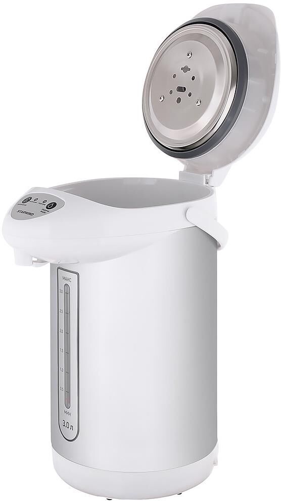 Мощность 750 Вт Объем 3 л 2 температурных режима Температурные режимы 100/85-95 °С Время закипания 30 мин Защита от перегрева Отключение при закипании Функция повторного кипячения Съемная крышка Индикатор уровня воды Вращающийся корпус на 360° Ручка для переноски Поддержание температуры воды Скрытый нагревательный элемент Цвет белый Срок гарантии 12 мес