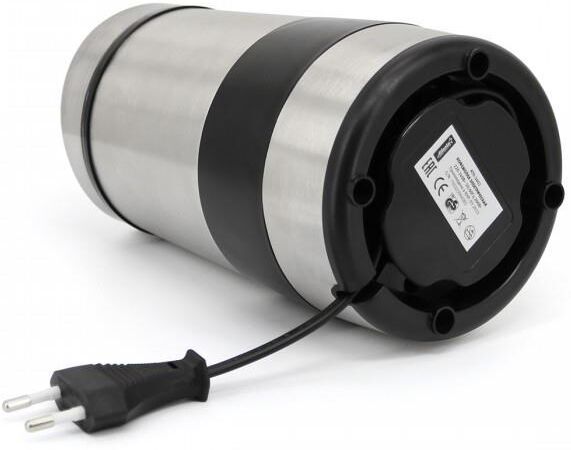 Высокая однородность помола Нож, корпус и чаша из нержавеющей стали Объем 60 г кофе Длина шнура 105 см Номинальная мощность 200 Вт 220-240 B ~ 50/60 Гц