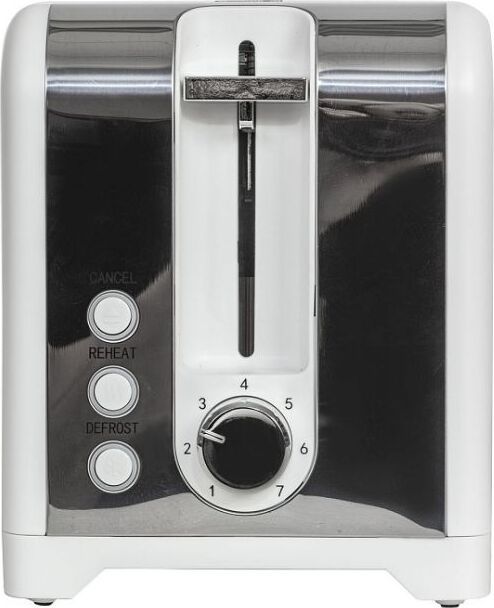 Тостер на 2 ломтика, мощность 900 Вт, 7 степеней поджаривания тостов, функция подогрева, функция размораживания, функция автоматического отключения, кнопка «Отмена», решетка для подогрева булочек, поддон для сбора крошек, термоизолированный пластиковый корпус, нескользящие резиновые ножки, отсек для компактного хранения шнура