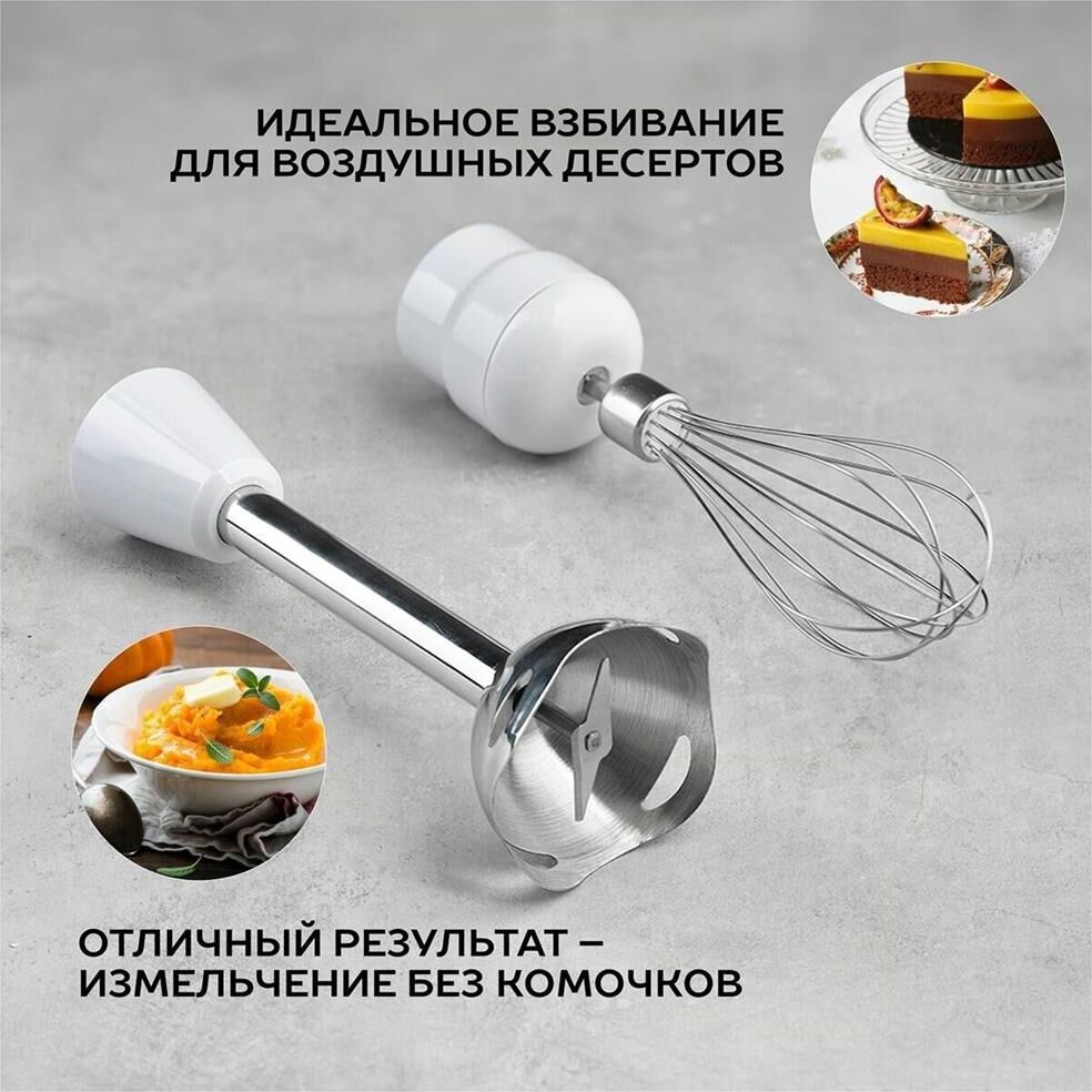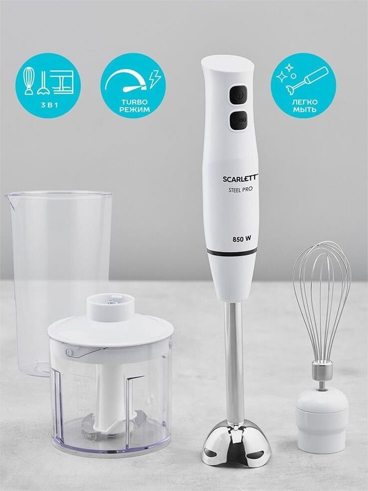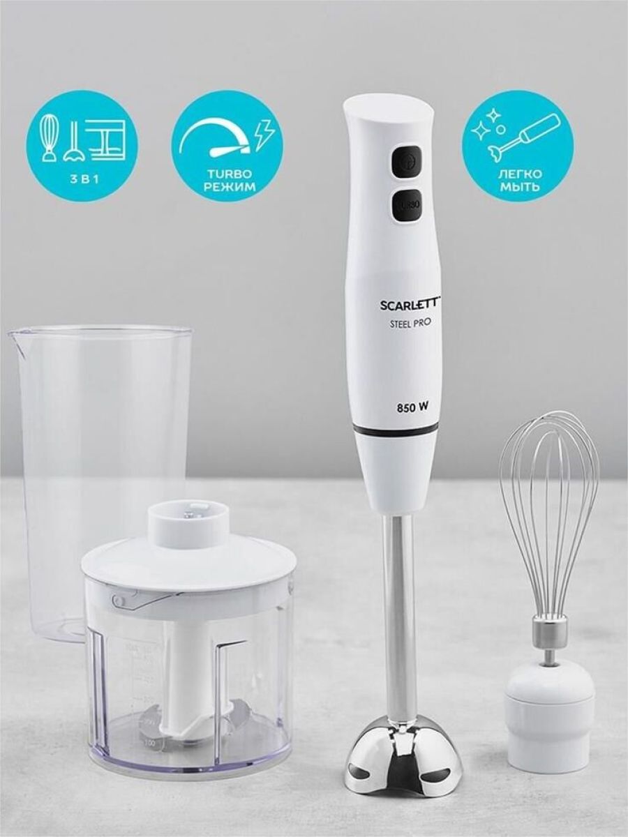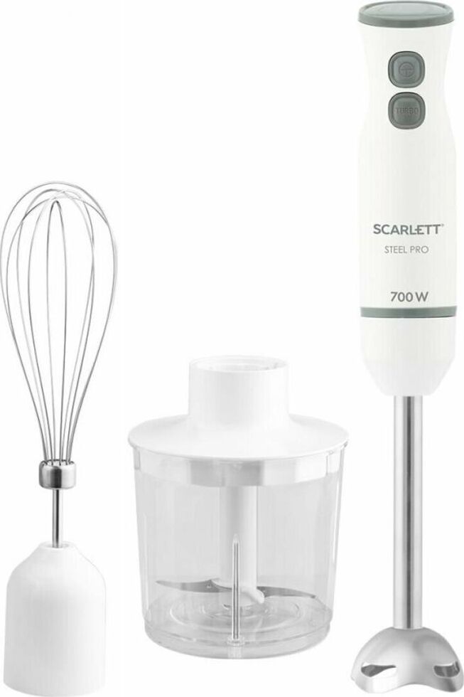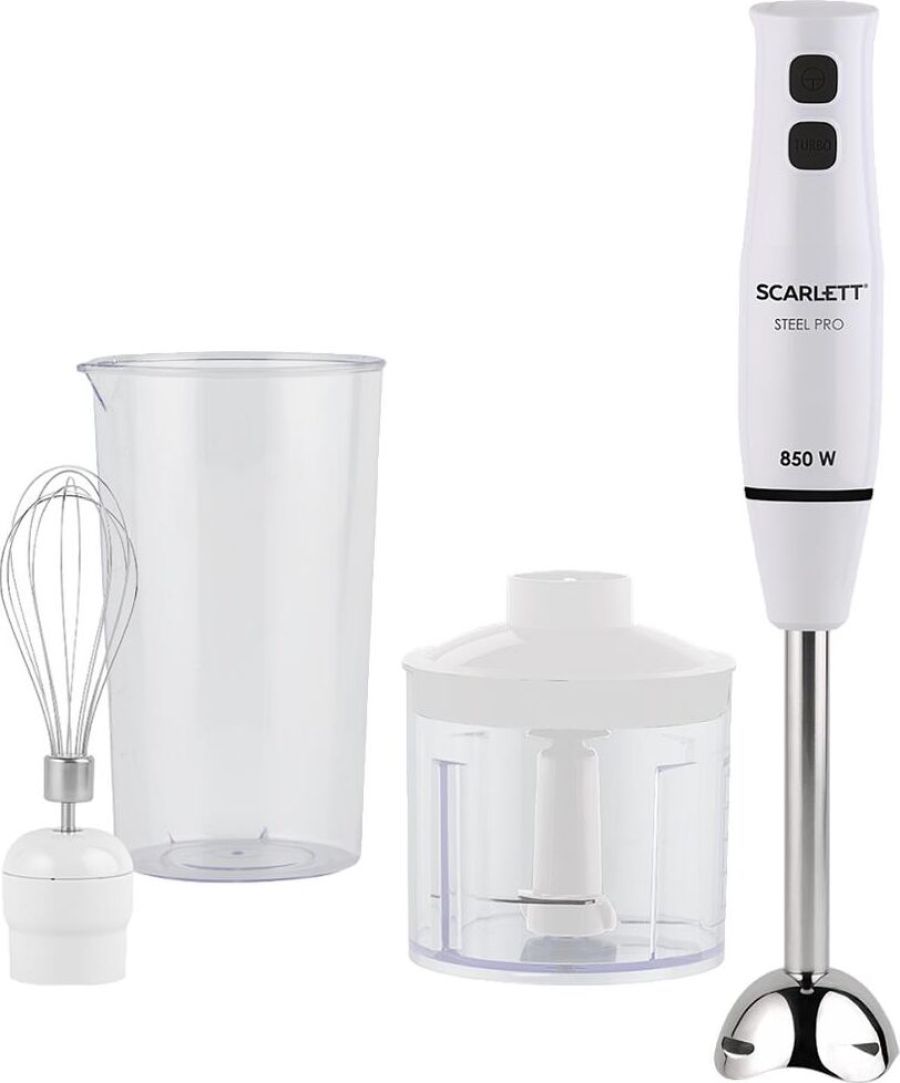 Тип: Погружной Мощность, Вт: 850 Количество скоростных режимов: 2 Режим TURBO: Да Мини-измельчитель: Да Емкость мини-измельчителя, л: 0.5 Венчик для взбивания: Да Мерный стакан: Да Мерный стакан, л: 0.7 Насадка-блендер: Да Материал погружной части насадки-блендера: Нержавеющая сталь STEEL PRO Мойка в посудомоечной машине: Мерный стакан, мини-измельчитель без крышки, венчик (металлическая часть) Материал корпуса: Пластик Длина электрошнура, м: 1 Цвет: Белый