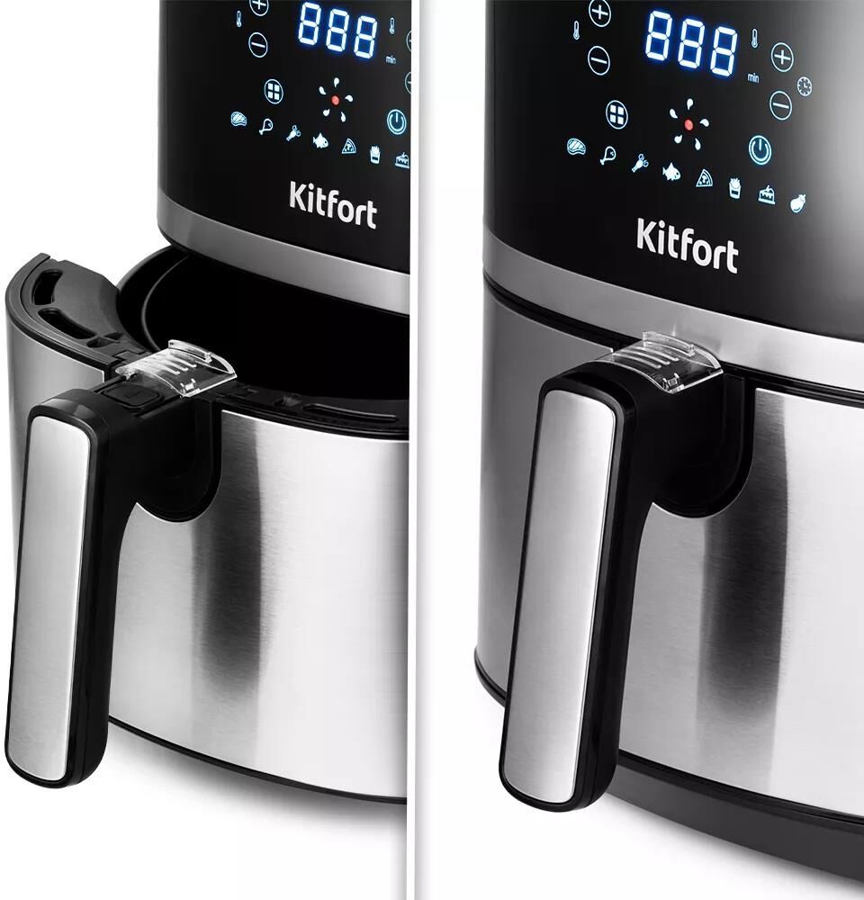Мощность 1500 Вт. Длина шнура 0,7 м. Объём 3,3 л. Количество программ приготовления 8 + ручные настройки. Регулировка температуры от 80 °C до 200 °C с шагом 5°C. Таймер до 60 мин, шаг 1 мин. Управление сенсорное. Размер устройства 265 х 330 х 330 мм.