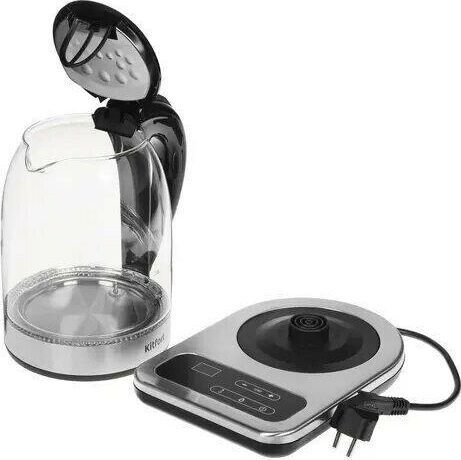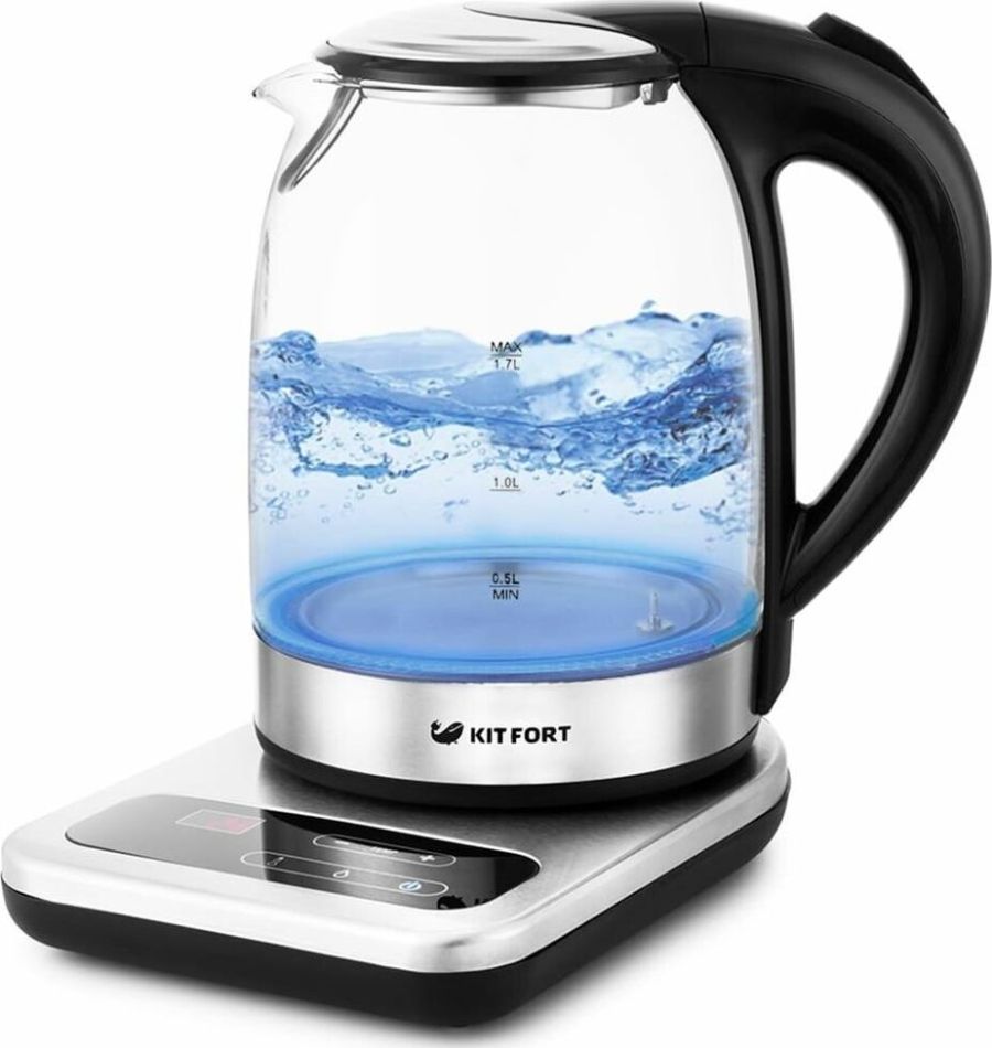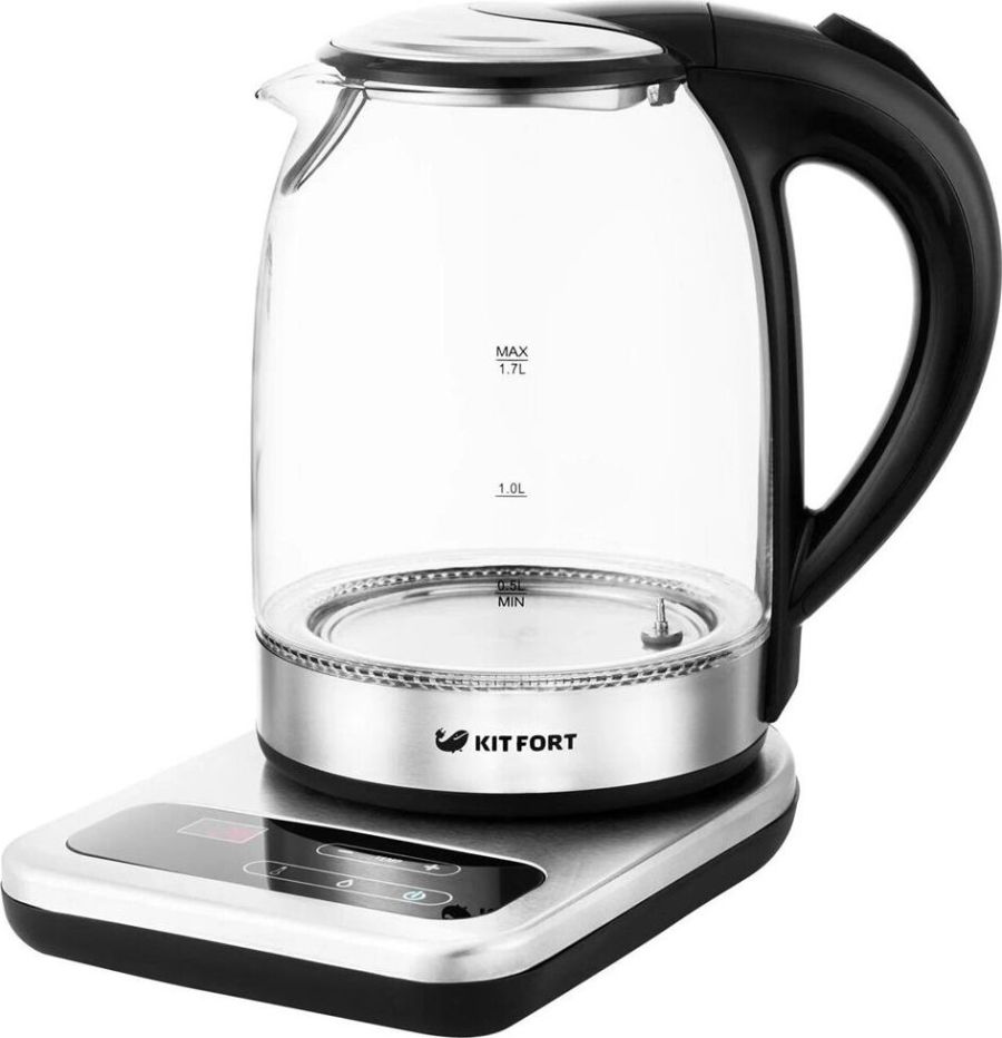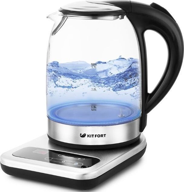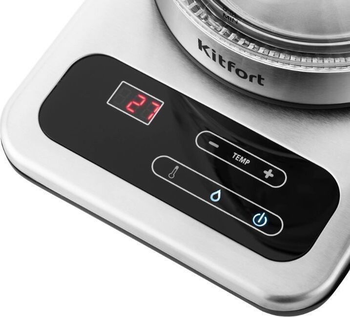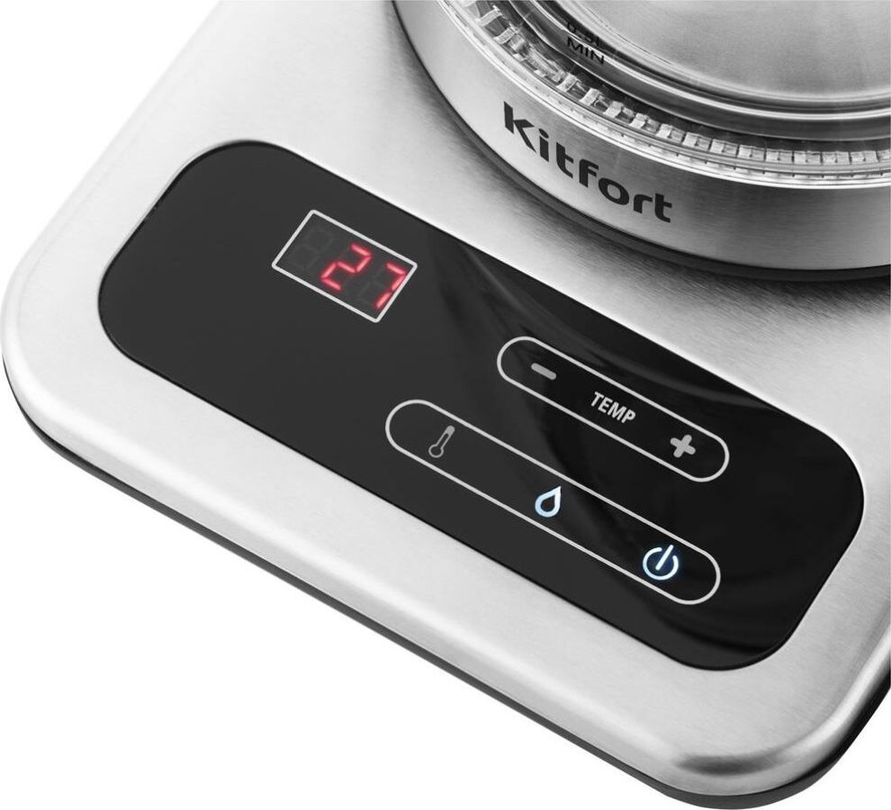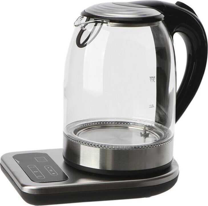 Мощность 2200 Вт. Максимальный объем 1.7 л. Нагревательный элемент скрытый. Индикатор включения есть. Индикатор уровня воды есть. Фильтр от накипи есть. Автоматическое отключение есть. Регулировка температуры нагрева есть. Дисплей есть. Кнопка открытия крышки есть. Подставка 360 градусов да. Защита от включения без воды есть. Подсветка воды есть. Поддержание температуры воды есть. Звуковой сигнал при закипании есть. Материал корпуса стекло и пластик. Цвет нержавеющая сталь.