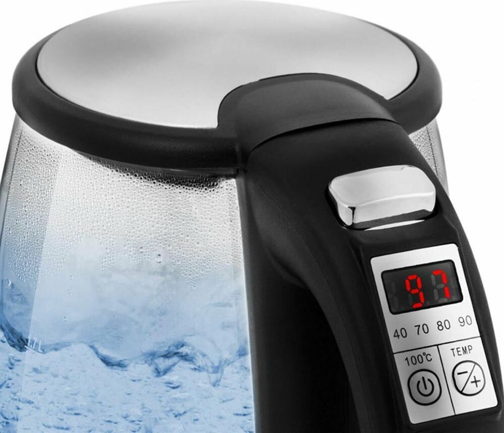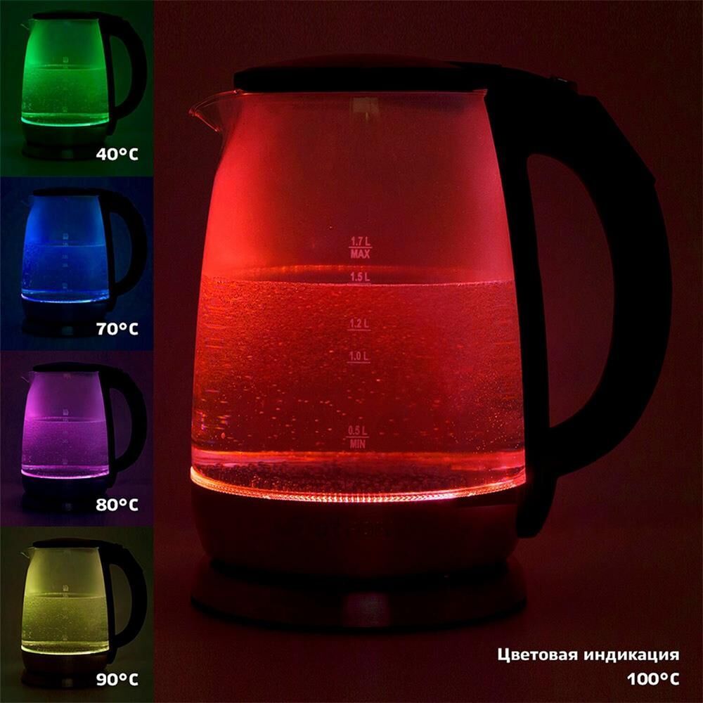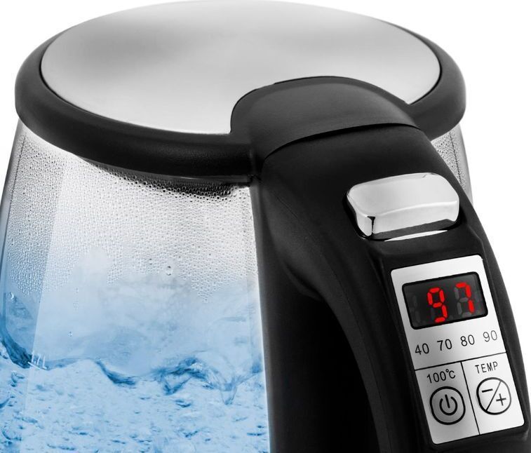 Мощность 2200 Вт. Максимальный объем 1.7 л. Нагревательный элемент скрытый. Индикатор включения есть. Фильтр от накипи есть. Автоматическое отключение есть. Регулировка температуры нагрева есть. Температурные режимы 4 шт. Дисплей есть. Подставка 360 градусов да. Цветовая индикация температуры воды есть. Поддержание температуры воды есть. Особенности Температурные режимы: 40, 70, 80 и 90 С. Материал корпуса стекло и нержавеющая сталь и пластик.