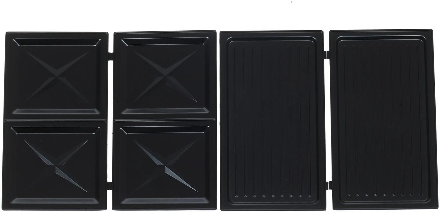 Мощность 1000 Вт. Температура 145 - 205°С. Тип управления механическое. Антипригарное покрытие нагревательных частей есть. Съемные формы есть. Формы для готовки Для гриля (установлены в устройство) - 2 шт. Для сэндвичей - 2 шт. Для вафель - 2 шт. Установка температуры приготовления есть. Индикатор включения есть. Индикатор нагрева есть. Фиксация в закрытом состоянии есть. Ненагревающаяся ручка есть. Мойка рабочих поверхностей в посудомоечной машине да. Размер панелей: 22,2 х 12,8 см. Длина электрокабеля 0.85 м. Материал корпуса нержавеющая сталь/пластик. Цвет черный. Размеры (ШхВхГ) 23.5 х 9 х 20.8см.