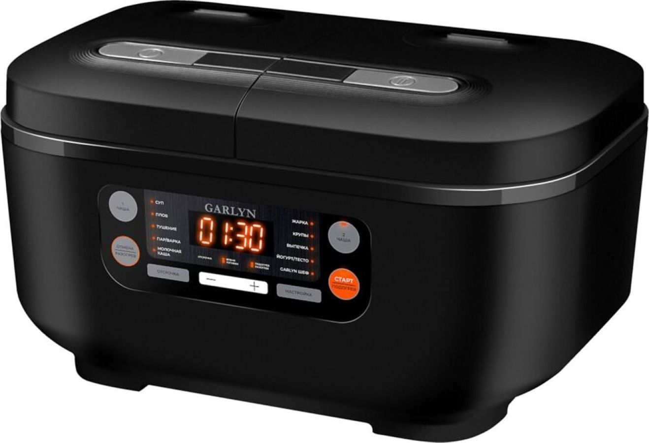 Напряжение 220-240 В,50 Гц; Мощность 700 Вт; Материл корпуса Пластик; Управление Электронное; Покрытие чаш Антипригарное Daikin®; Внутренние крышки Съёмные; Дисплей; Суммарный объём чаш 3 л; Диапазон температуры приготовления 35-160?; Поддержание температуры До 12 ч; Разогрев; Длина шнура 1 м; Мультиварка с 2 чашами: сразу несколько блюд - за одно приготовление. Минимум времени и максимум удобства. Десерты и закуски, выпечка и горячие блюда, гарниры и супы - в авторежиме! 10 встроенных программ и функция GARLYN ШЕФ. Регулировка температуры и времени приготовления.
