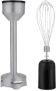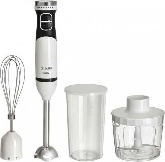 Ручной блендер, 4 в 1: Измельчитель, миксер, блендер и насадка для пюре, Мощность 1500 Вт, Плавная регулировка скорости, Скорость вращения до 14000 об/мин, Насадка блендера и венчик для взбивания из нержавеющей стали, Чаша измельчителя объемом 0,5 л, Мерный стакан с крышкой 0,7 л, Многофункциональный нож для измельчения и смешивания, Низкий уровень шума, Double Protect технология: защита от перегрузки и перегрева, Легкий и эргономичный, Петля для подвешивания, LED индикация, Электропитание 220-240 В, 50/60 Гц
