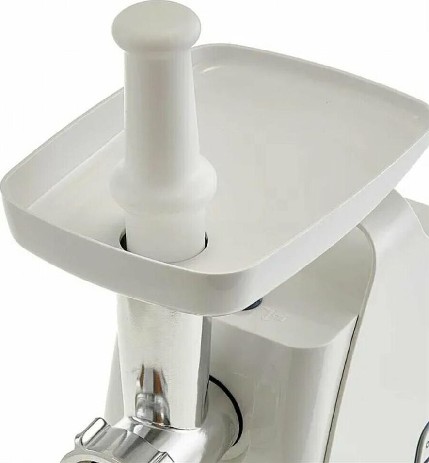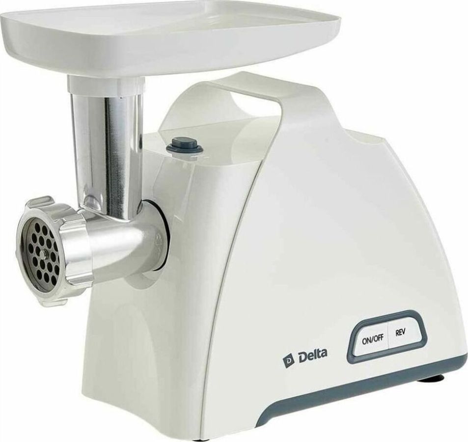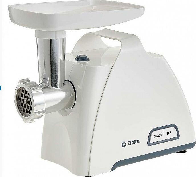 DELTA DL-6104M белый с серым Параметры Максимальная мощность 2000 Вт Номинальная потребляемая мощность 300 Вт Производительность 1,8 кг/мин Описание Электромясорубка предназначена для измельчения мяса и подобных продуктов, а также приготовления печенья в бытовых и аналогичных условиях Подходит для обработки любого вида мяса Цвет: белый с серым Прочный металлический привод шнека увеличивает надежность и долговечность прибора Крестообразный нож из высококачественной нержавеющей стали Две решетки для измельчения с отверстиями разного диаметра - 5 и 7 мм Две насадки «КУББЕ» Насадка для набивки колбасок Удобный толкатель Противоскользящие прорезиненные ножки Функция РЕВЕРС обеспечивает простоту очистки шнека при забивании продуктами Система защиты двигателя от перегрева Упаковка: цветная коробка