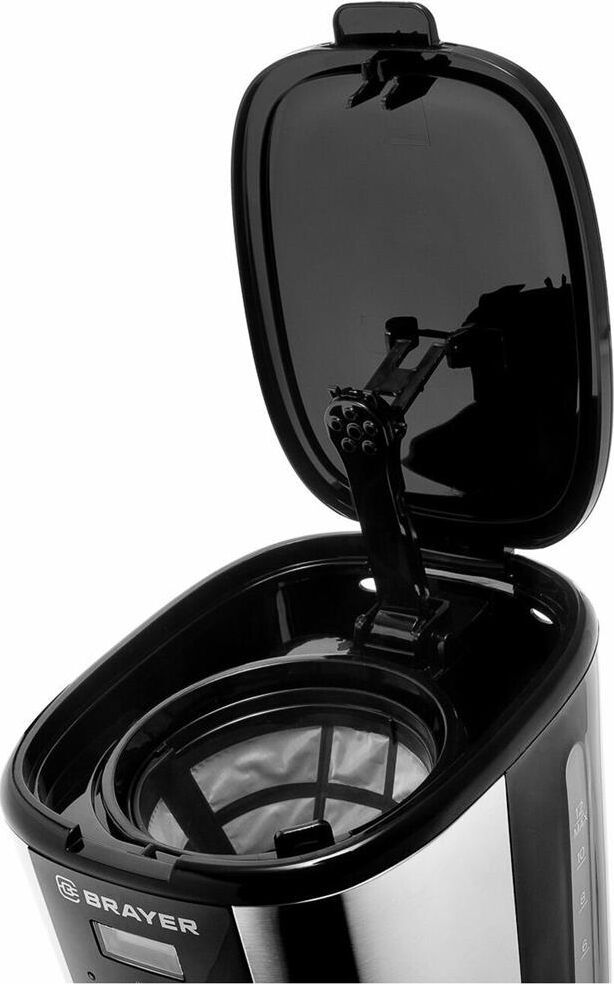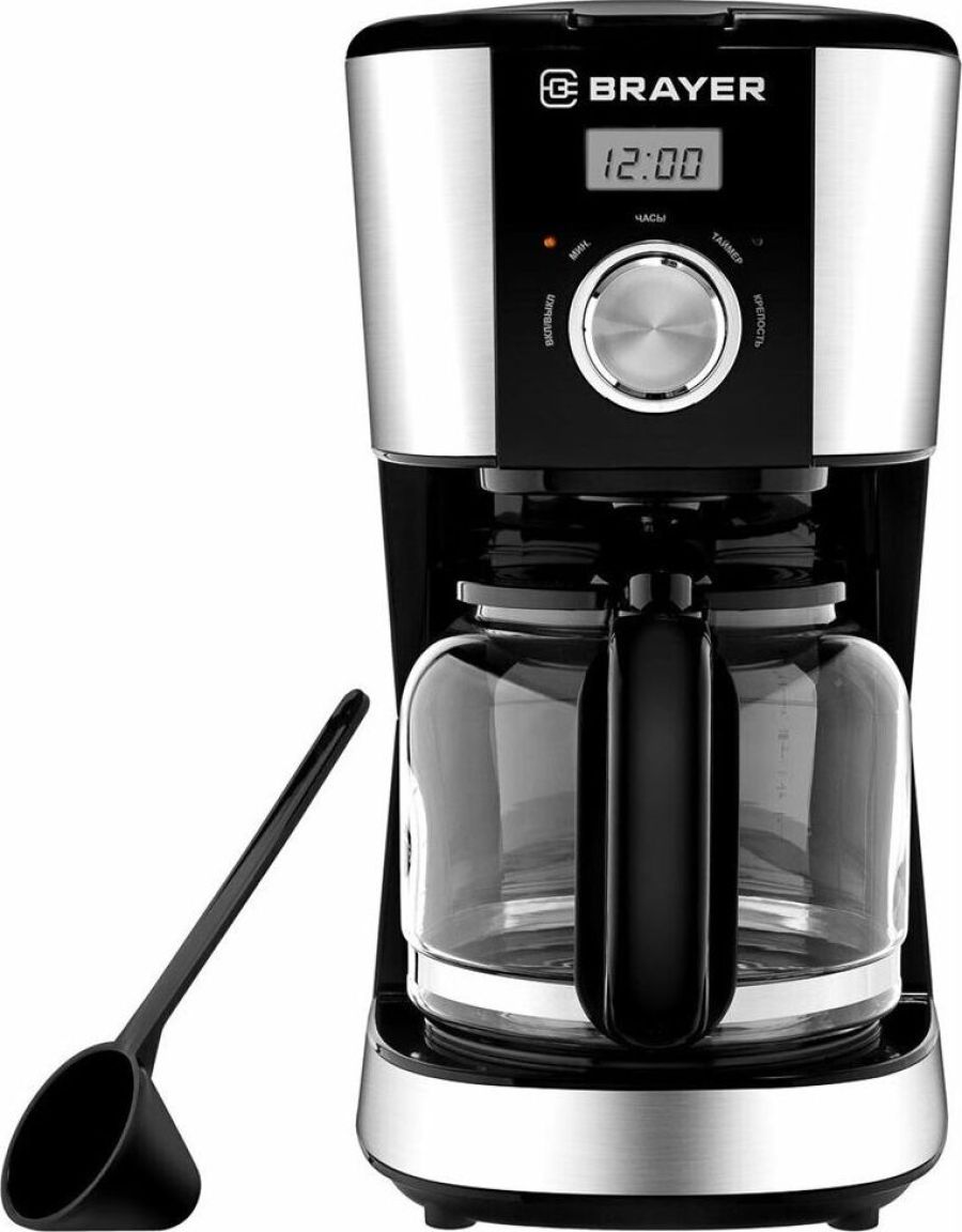 1122BR Кофеварка BRAYER 900 Вт, 1,5 л, таймер, LCD-дисп,противокап сист. Мощность 900 Вт Объем 1,5 л Корпус из высококачественного пластика, декорирован нержавеющей сталью Нейлоновый съемный фильтр Противокапельная система LCD-дисплей Автоотключение через 40 минут Поддержание температуры Шкала уровня воды Световой индикатор работы Индикатор уровня воды Противоскользящее основание Электропитание 220-240 В, 50-60 Гц