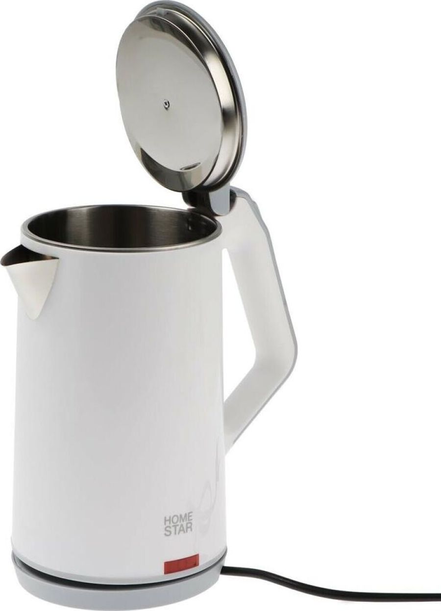 HOMESTAR HS-1036 (1,8 л) белый, двойной корпус Объем, л 1.8 Мощность (Вт) 1500 Материал корпуса нержавеющая сталь/пластик Фильтр от накипи есть Защита от включения без воды есть Подсветка воды нет LED-индикатор работы да Тип управления механический Цвет корпуса белый Нагревательный элемент закрытый (спираль) Вес нетто, кг 1,23