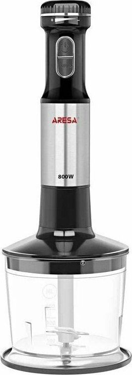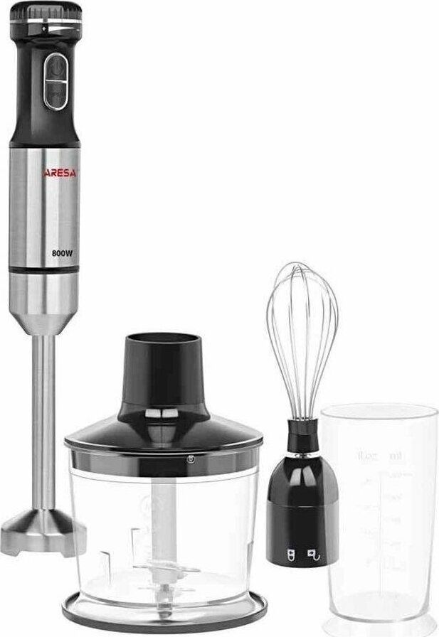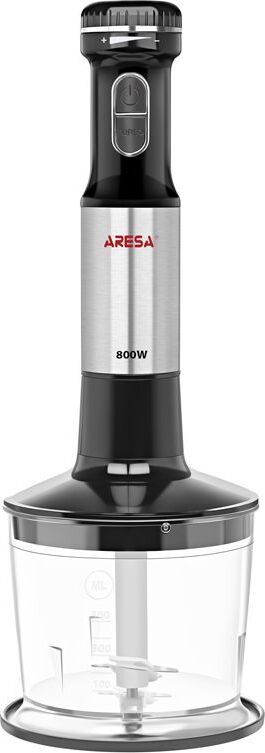ARESA AR-1124 КОМПЛЕКТАЦИЯ: Мерный стакан для смешивания (объём 0,6 л) с крышкой Чаша для измельчения (объём 0,5 л) Венчик для взбивания Нож для измельчения Характеристики Мощность: 800 Вт Плавная регулировка скорости Функция«ТУРБО» (максимальное увеличение скорости) Ножка блендера из нержавеющей стали Съемная насадка-блендер с 4-х лопастным ножом Эргономичный дизайн 3 ОСНОВНЫЕ ФУНКЦИИ: Измельчение Смешивание Взбивание