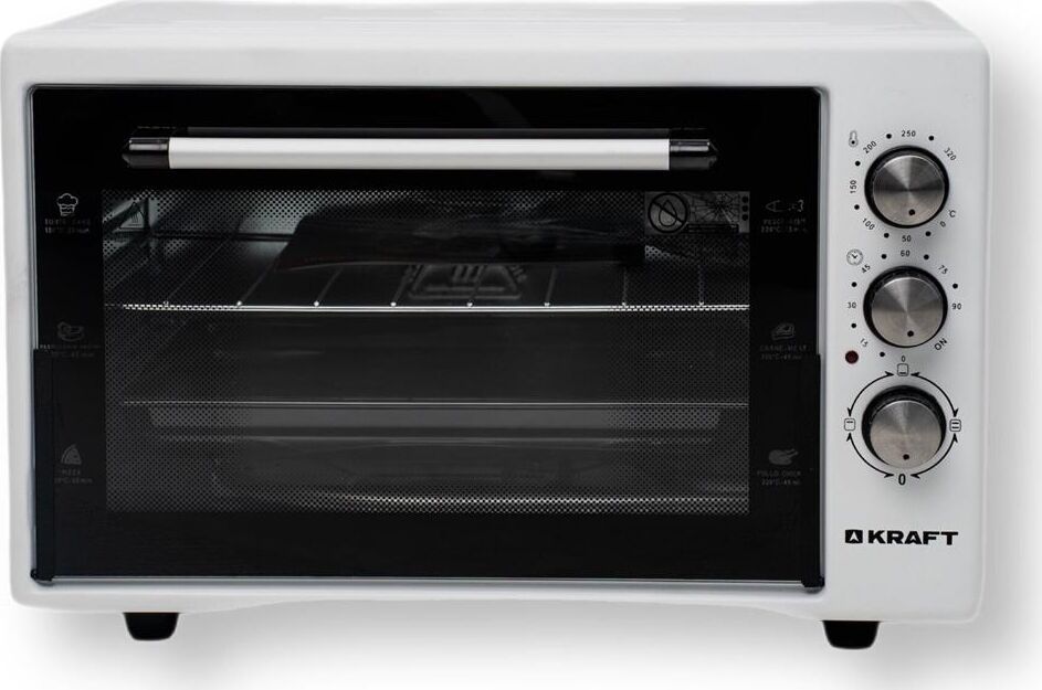 (ШхГхВ)50х36,5х30,5см.Объем 32л.Цвет белый.Количество режимов работы 3.Таймер с отключением до 90мин.Максимальная температура 320С.Мощность 1500Вт.Лампа освещения.Термостат.