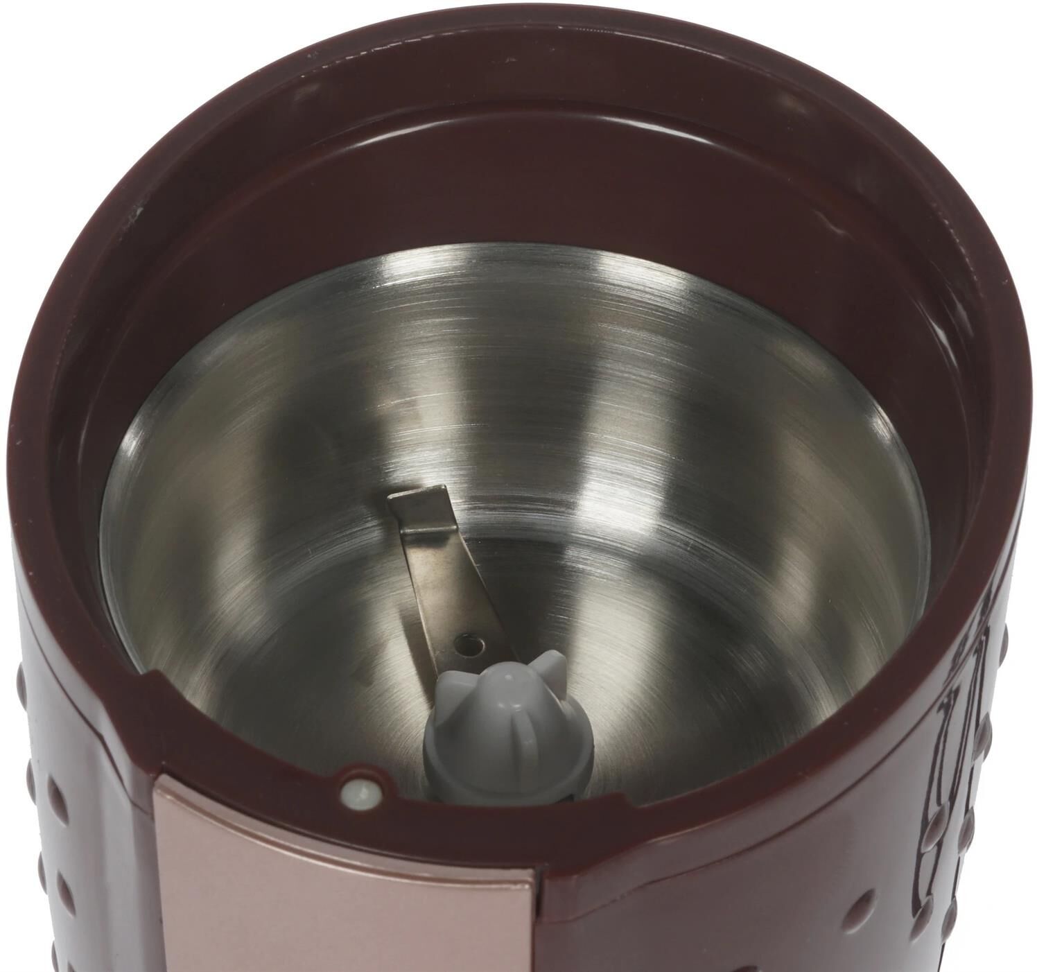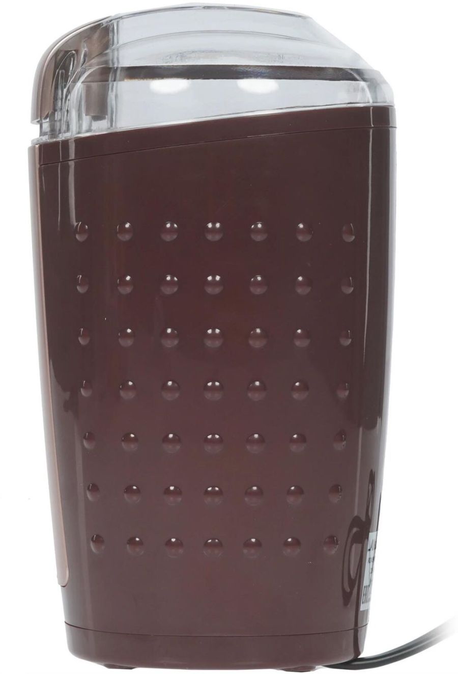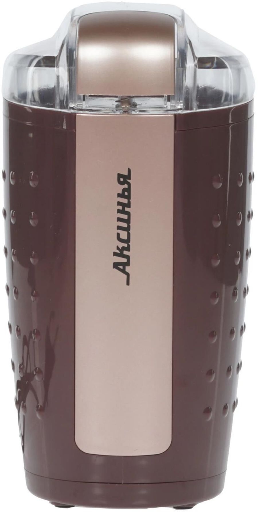 АКСИНЬЯ КС-602 коричневый Параметры Номинальная потребляемая мощность 200 Вт Объем 100 г Описание Кофемолка - устройство для размола зерен кофе. Принцип работы роторной (ножевой) кофемолки состоит в том, что кофейные зерна дробит, одновременно перемешивая, вращающийся с большой скоростью острый стальной нож. Тонкость помола зерен определяется временем работы кофемолки Пригодна для перемалывания кофе, орехов и специй Контейнер и нож из нержавеющей стали Противоскользящие прорезиненные ножки Блокировка включения при снятой крышке Цвет: коричневый