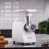 Размеры0,30 х 0,19 х 0,27 Вес 4 кг. Мощность1500 Вт Производительность 1,66 кг/мин Материал Пластик Комплектация: - решетки с отверстиями диаметром 5 и 7мм и решетка с овальными отверстиями - нож из нержавеющей стали с саблевидной режущей кромкой - приставка для набивки колбас - приставка кеббе - приставка соковыжималка шнековая для получения сока из ягод, мягких плодов Электрическая мясорубка М34.04 повышенной мощности без труда справится с мясом любого качества. Предназначена для приготовления фарша из мяса, рыбы, грибов; измельчения овощей, фруктов; получения пюреобразных масс из ягод; профилирования теста.