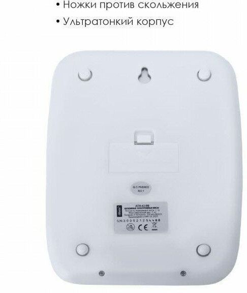 ATLANTA ATH-6198 (WHITE)Яркий LED дисплей Высокая точность взвешивания 1 г Функция обнуления веса Автоотключение Предел взвешивания 5 кг Индикатор слабых батареек Индикатор перегрузки Работает от 1 x 3В тип CR2032