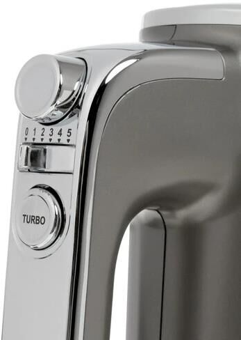 Мощность 800 Вт. Кол-во скоростей 5. Режим «Турбо». Плавный старт. Пара насадок для взбивания. Пара насадок для замешивания. Кнопка освобождения насадок.