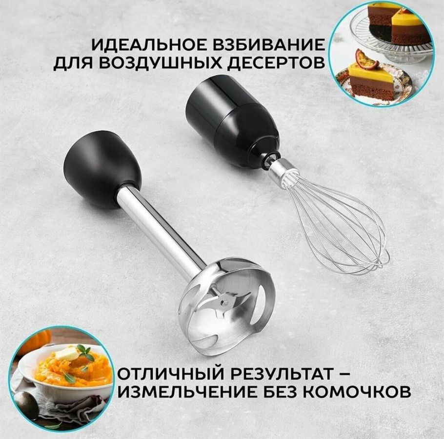 Тип: Погружной Мощность, Вт: 800 Количество скоростных режимов: 2 Режим TURBO: Да Мини-измельчитель: Да Емкость мини-измельчителя, л: 1.5 Мерный стакан: Да Мерный стакан, л: 0.6 Тип ножа: MULTIEFFECT Дополнительные насадки: диск для терки и шинковки Аксессуары в комплекте: Крышка для хранения готового продукта Длина электрошнура, м: 1.1 Цвет: Черный