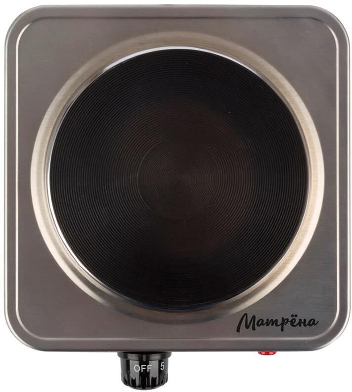 Размер конфорки 155 мм. Корпус - нержавеющая сталь. Световой индикатор работы . Плавная регулировка температуры конфорки . Защита от перегрева . Мощность конфорки 1000 Вт.