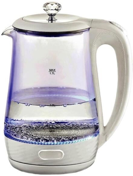 Cтеклянный чайник Объем: 1.7 л. Мощность: 1850-2200 Вт. Термостойкое стекло. Внутренняя подсветка. Поворачивающийся корпус на 360°. Защита от перегрева. Автоматическое отключение. Закрытый нагревательный элемент.