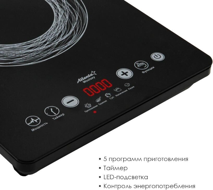 Полированная стеклокерамическая поверхность 280*350 мм. 5 программ приготовления пищи. Сенсорное управление. Высококачественного биполярный IGBT транзистор производства Siemens. Сверхширокий диапазон напряжения. Таймер включения и выключения. Функция замера мощности и напряжения. Защита от перегрева. Номинальная мощность 2000 Вт. 230 B ~ 50 Гц.