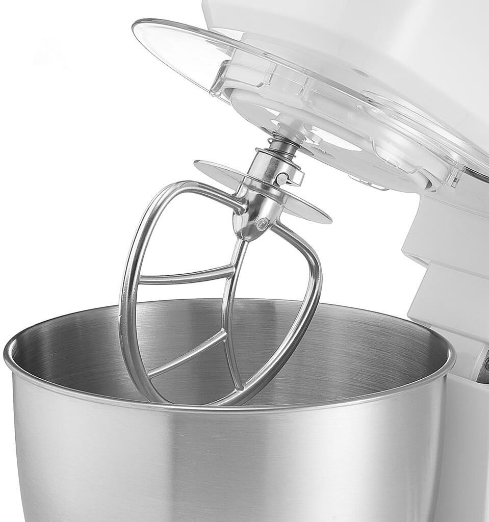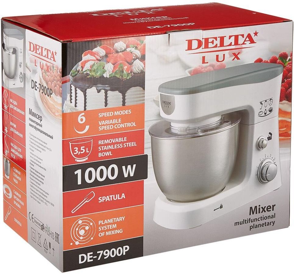 Номинальная потребляемая мощность 1000 Вт. Объем чаши 3,5 л. Противоскользящие ножки. 6 скоростных режимов. Плавная регулировка скоростей. Контроль наклона миксера. Защита от перегрева.