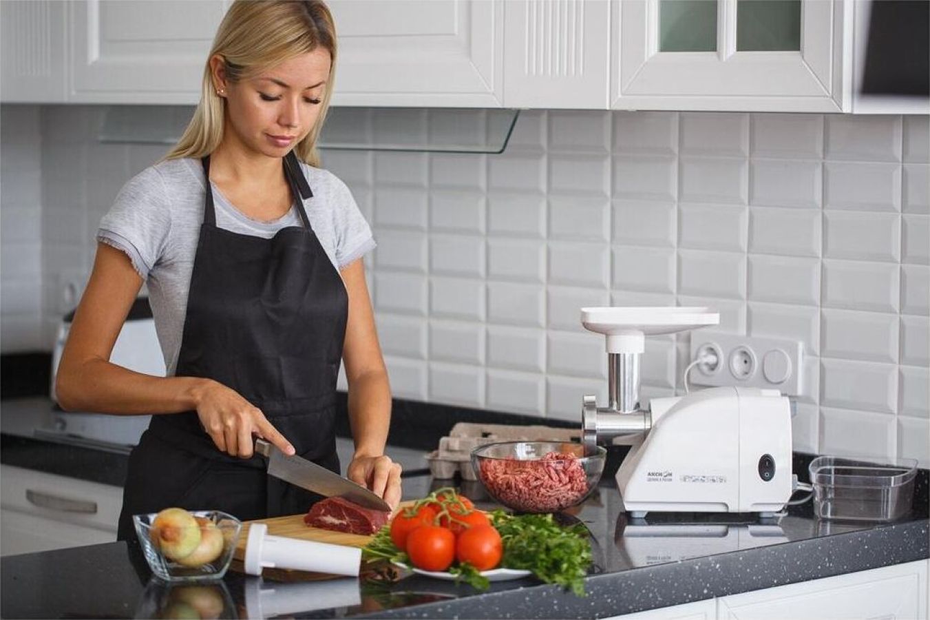 Номинальная потребляемая мощность 160 Вт. Производительность 0,5 кг/мин. Мощность 600 Вт. Защита двигателя от перегрузки; Экономия электроэнергии без ущерба качеству; Отсек для хранения шнура питания; 2 вида решеток для получения фарша разной консистенции - с диаметром отверстий 4,9 мм и 7 мм; Высокое размещение шнековой камеры; Устойчивые нескользящие ножки для фиксации мясорубки на поверхности стола; 4 варианта комплектации.