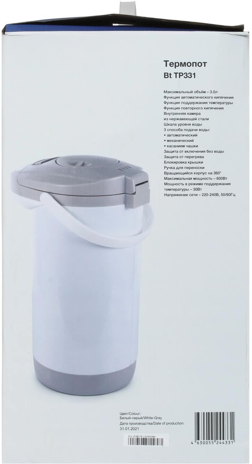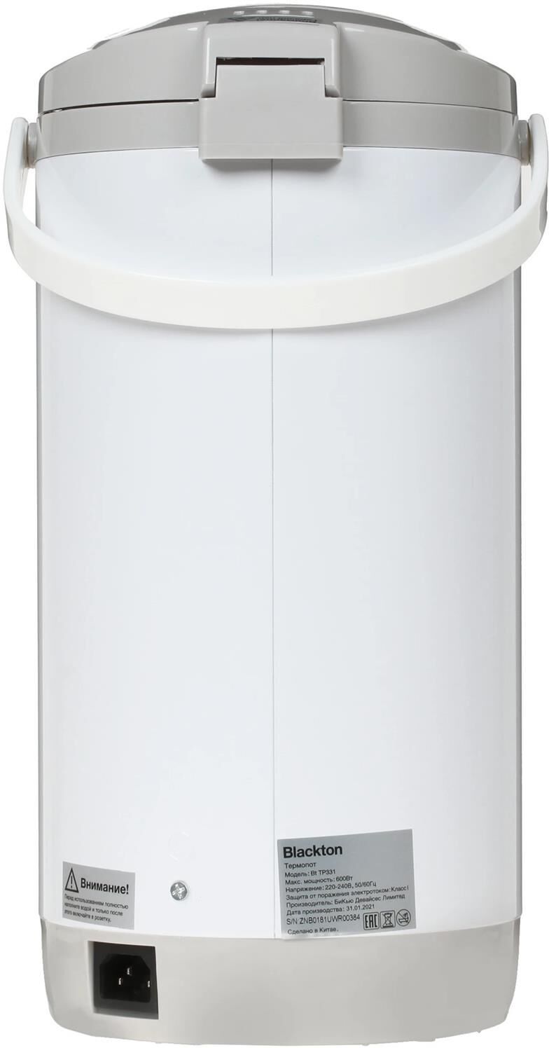 Общий объем 3л, Автоматическое поддержание температуры, Повторное кипячение, 3 способа подачи воды, Защита от включения без воды, Защита от перегрева, Блокировка крышки, Материал внутренней камеры Нержавеющая сталь, Мощность в режиме поддержания температуры 30 Вт, Потребляемая мощность 600 Вт, Напряжение 220-240В, 50/60Гц
